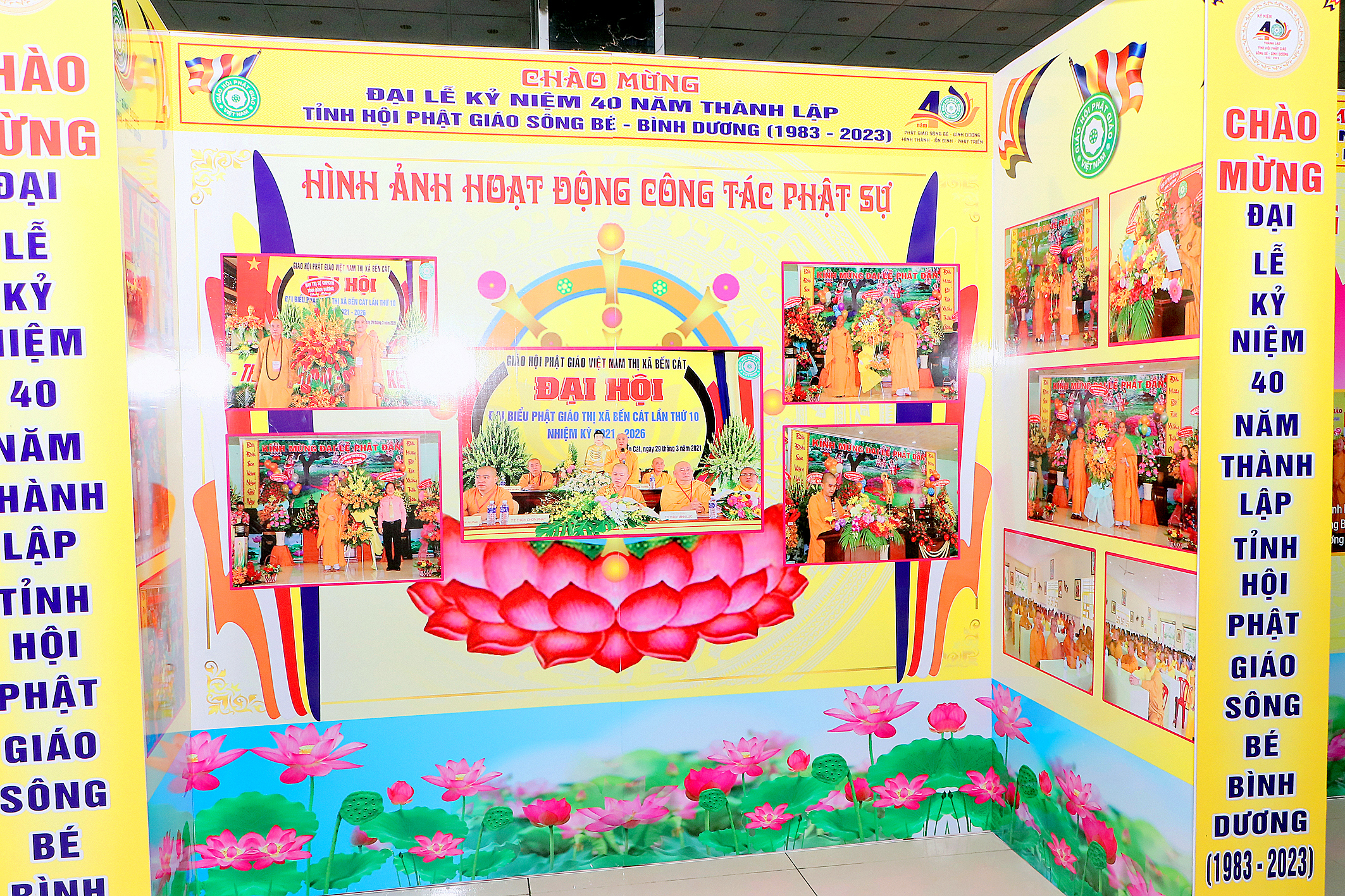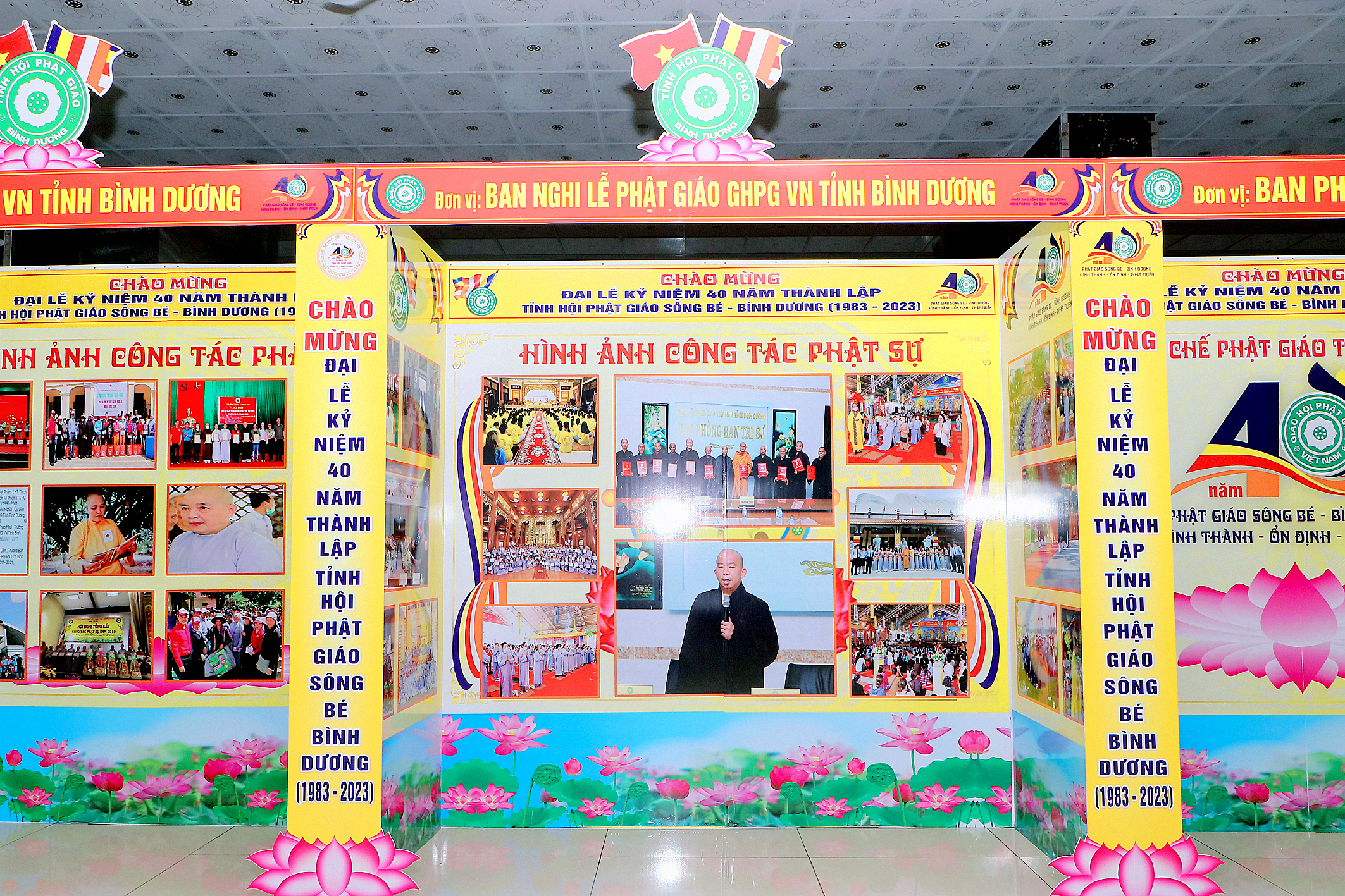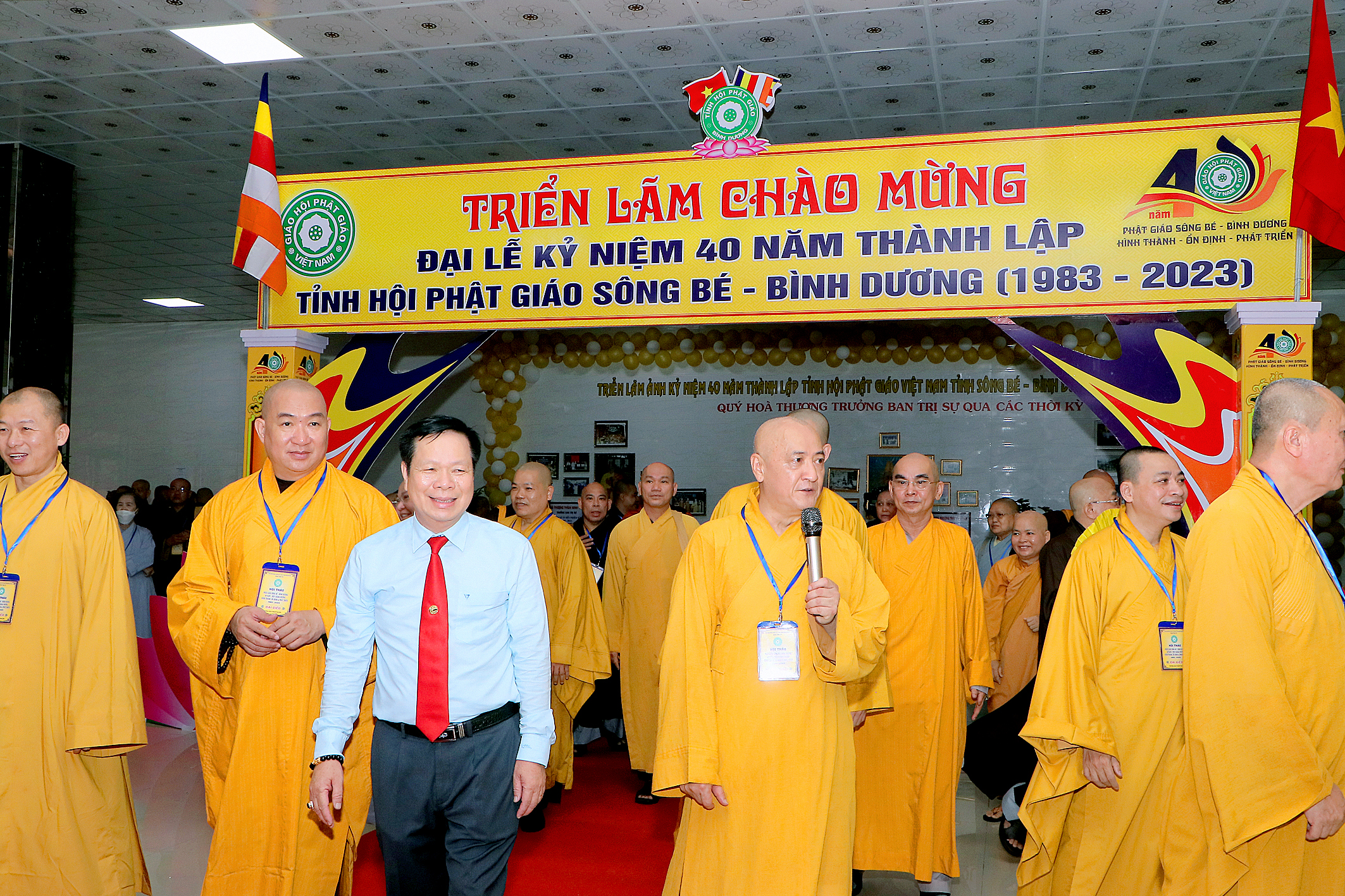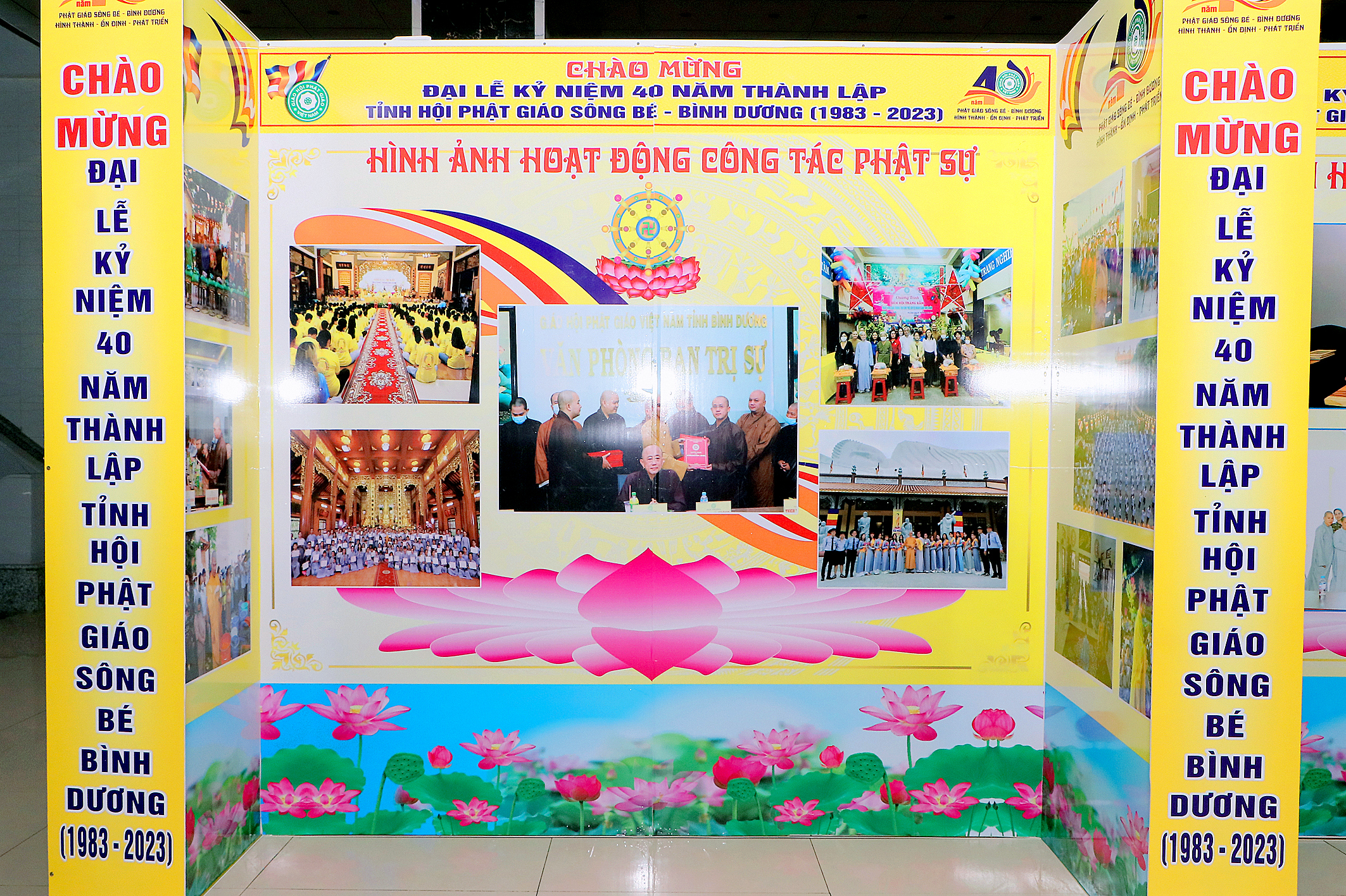 Trước đó cùng ngày, tại Hội trường Trung tâm Văn hóa tượng Phật Niết bàn đã long trọng diễn ra lễ Khai mạc Triển lãm các hoạt động, sự kiện của Phật giáo Sông Bé – Bình Dương trong 40 năm qua, nhằm làm rõ quá trình hình thành, phát triển, những đóng góp của Phật giáo Sông Bé – Bình Dương đối với đạo pháp và dân tộc nói chung, quê hương Sông Bé - Bình Dương nói riêng. Đồng thời, các báo cáo cũng nêu ra những bài học, những định hướng cho sự phát triển của thời kỳ hiện đại. Qua đây, sẽ là cơ hội để chúng ta cùng thảo luận để đưa ra những minh chứng mang tính khoa học của lịch sử và nhiều vấn đề cần phải nhìn nhận, nhằm để tôn vinh và phát huy những giá trị truyền thống cao đẹp trong suốt thời kỳ.