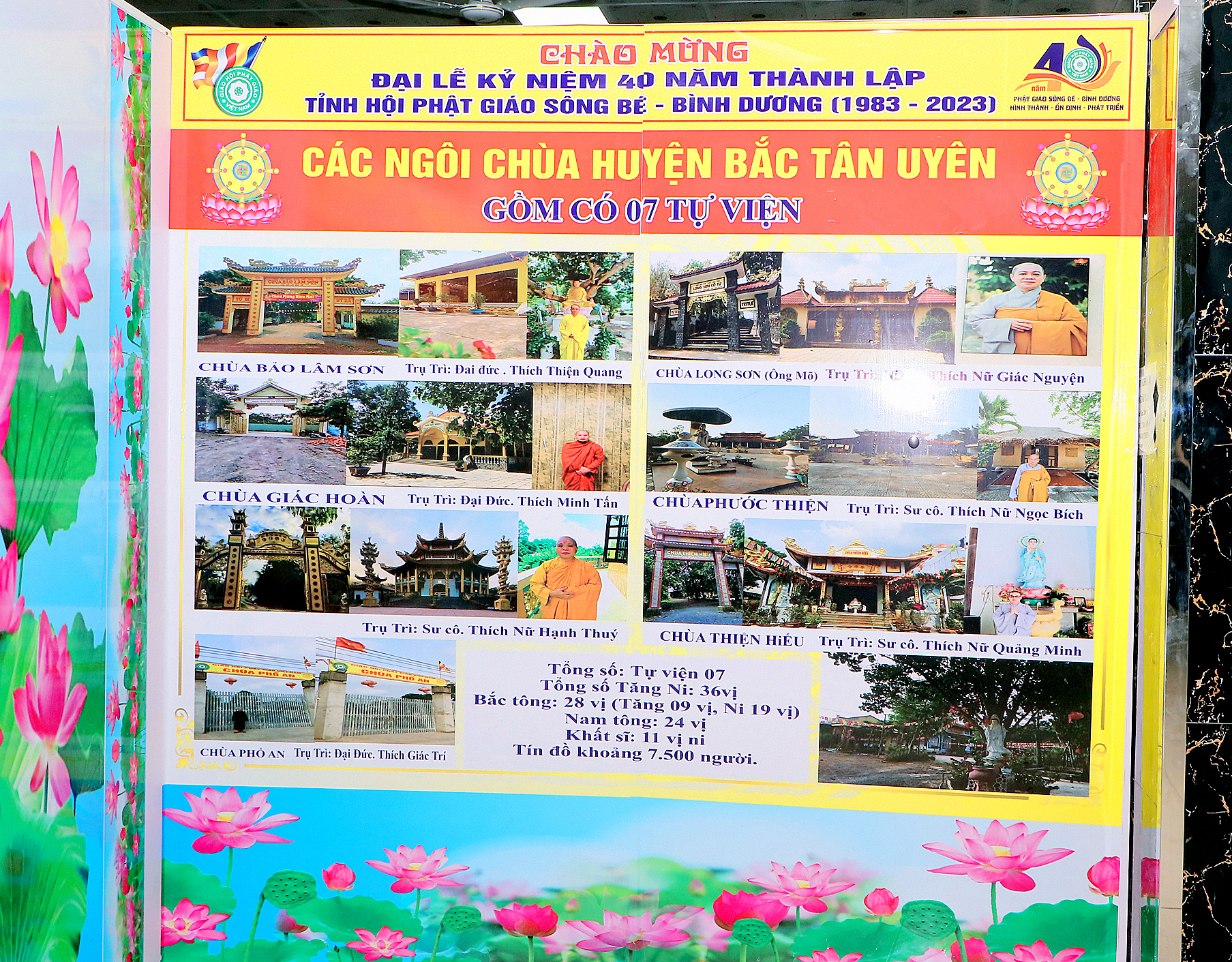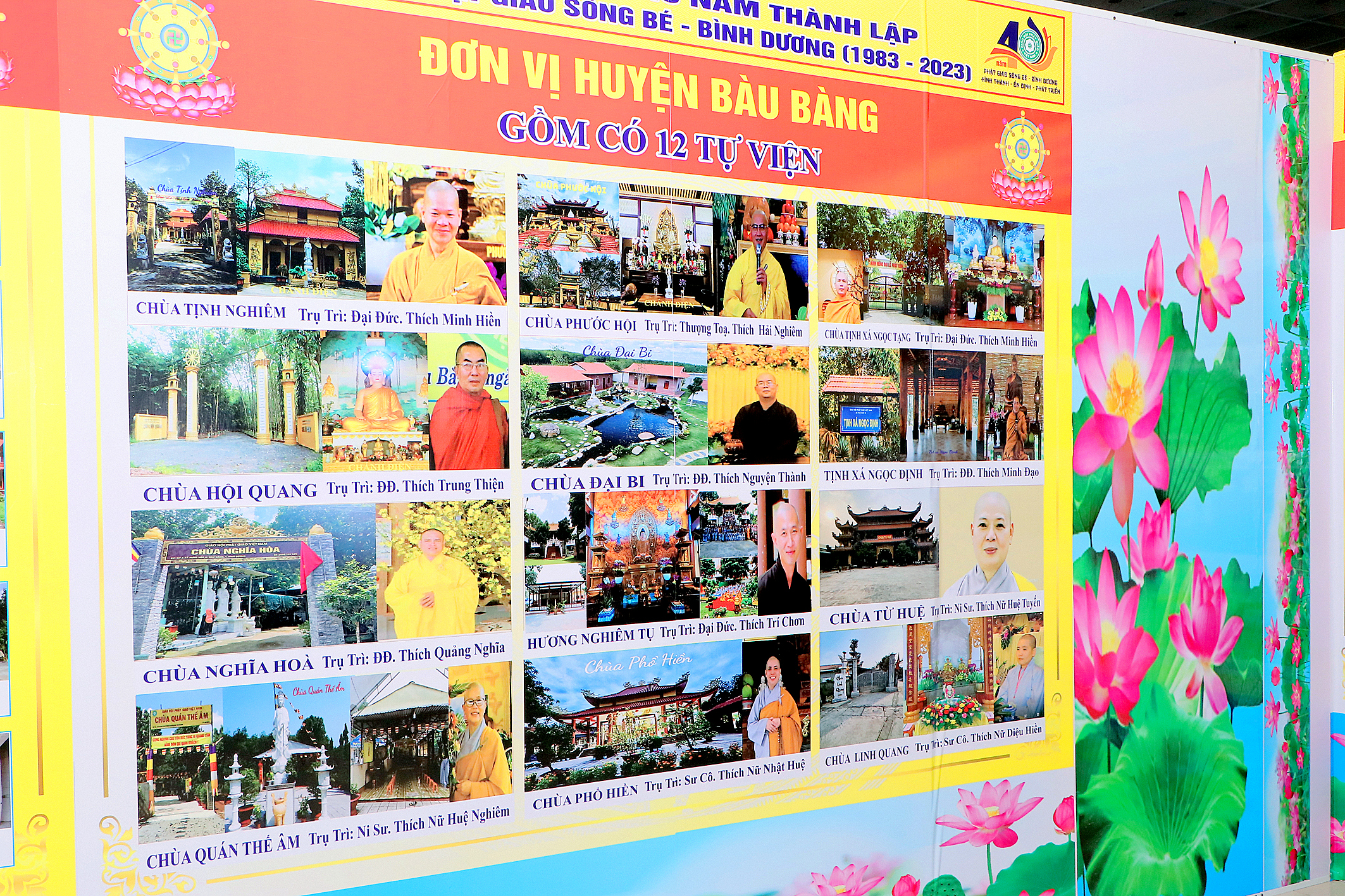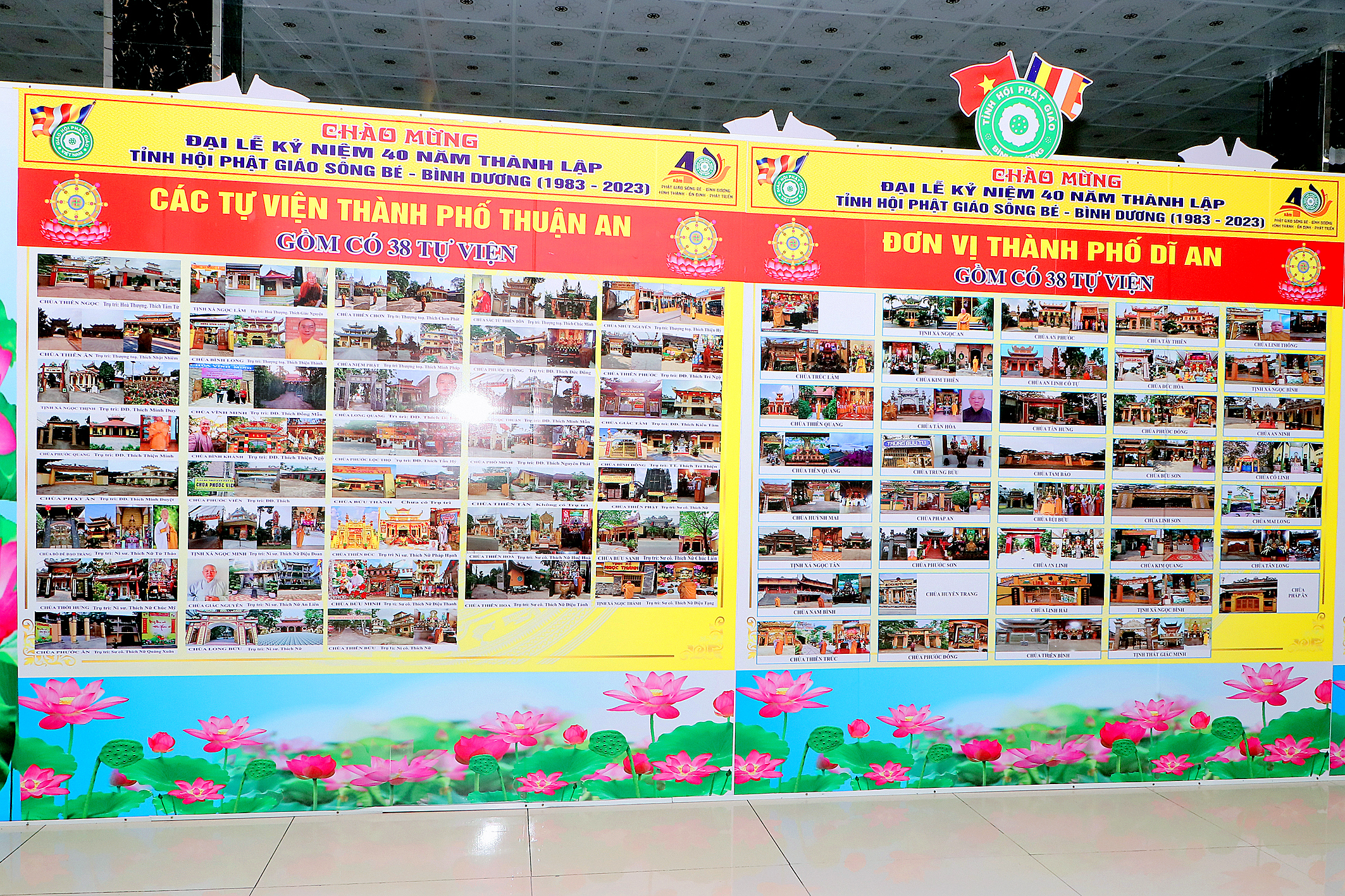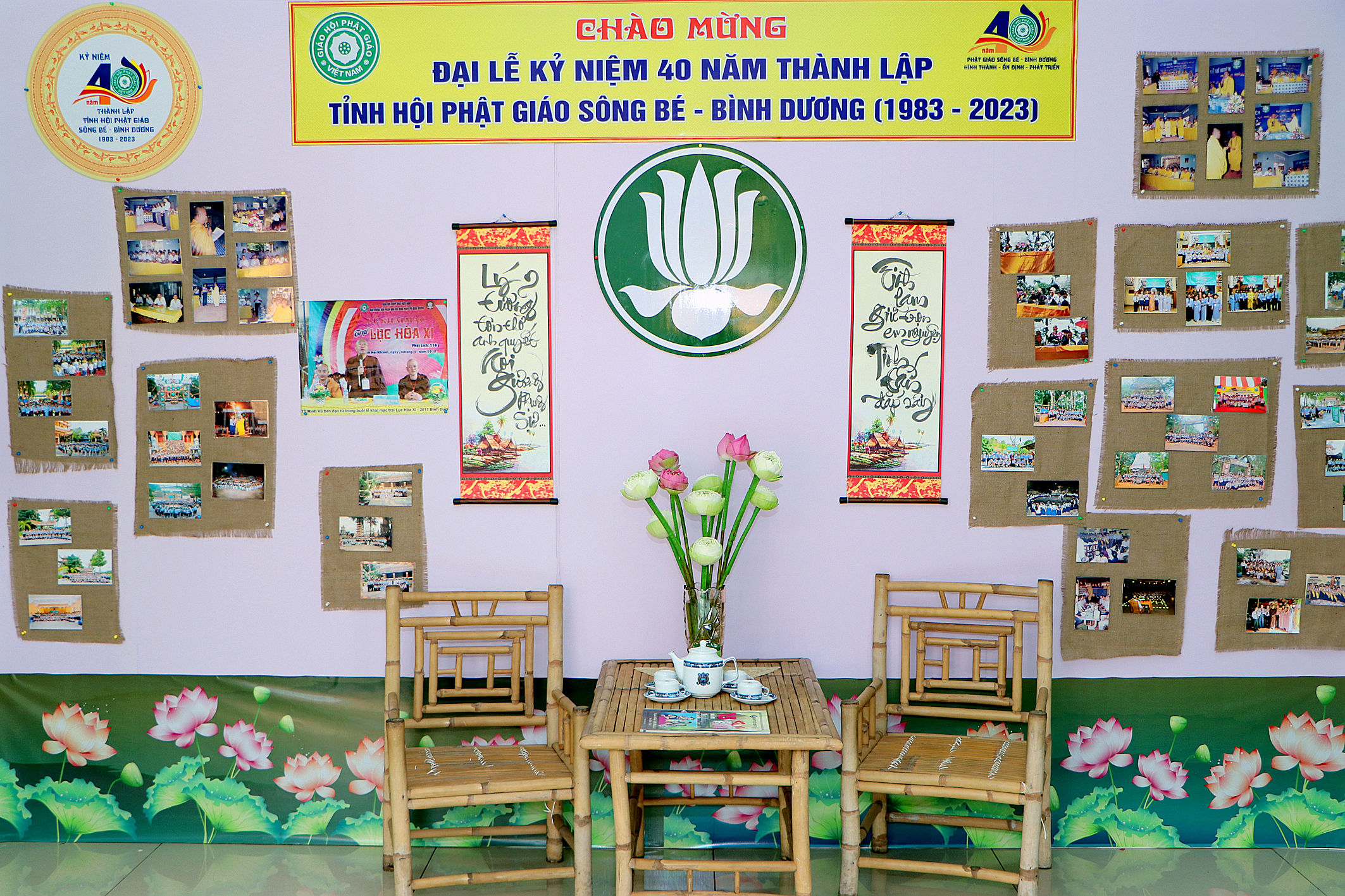 Trước đó cùng ngày, tại Hội trường Trung tâm Văn hóa tượng Phật Niết bàn đã long trọng diễn ra lễ Khai mạc Triển lãm các hoạt động, sự kiện của Phật giáo Sông Bé – Bình Dương trong 40 năm qua, nhằm làm rõ quá trình hình thành, phát triển, những đóng góp của Phật giáo Sông Bé – Bình Dương đối với đạo pháp và dân tộc nói chung, quê hương Sông Bé - Bình Dương nói riêng. Đồng thời, các báo cáo cũng nêu ra những bài học, những định hướng cho sự phát triển của thời kỳ hiện đại. Qua đây, sẽ là cơ hội để chúng ta cùng thảo luận để đưa ra những minh chứng mang tính khoa học của lịch sử và nhiều vấn đề cần phải nhìn nhận, nhằm để tôn vinh và phát huy những giá trị truyền thống cao đẹp trong suốt thời kỳ.