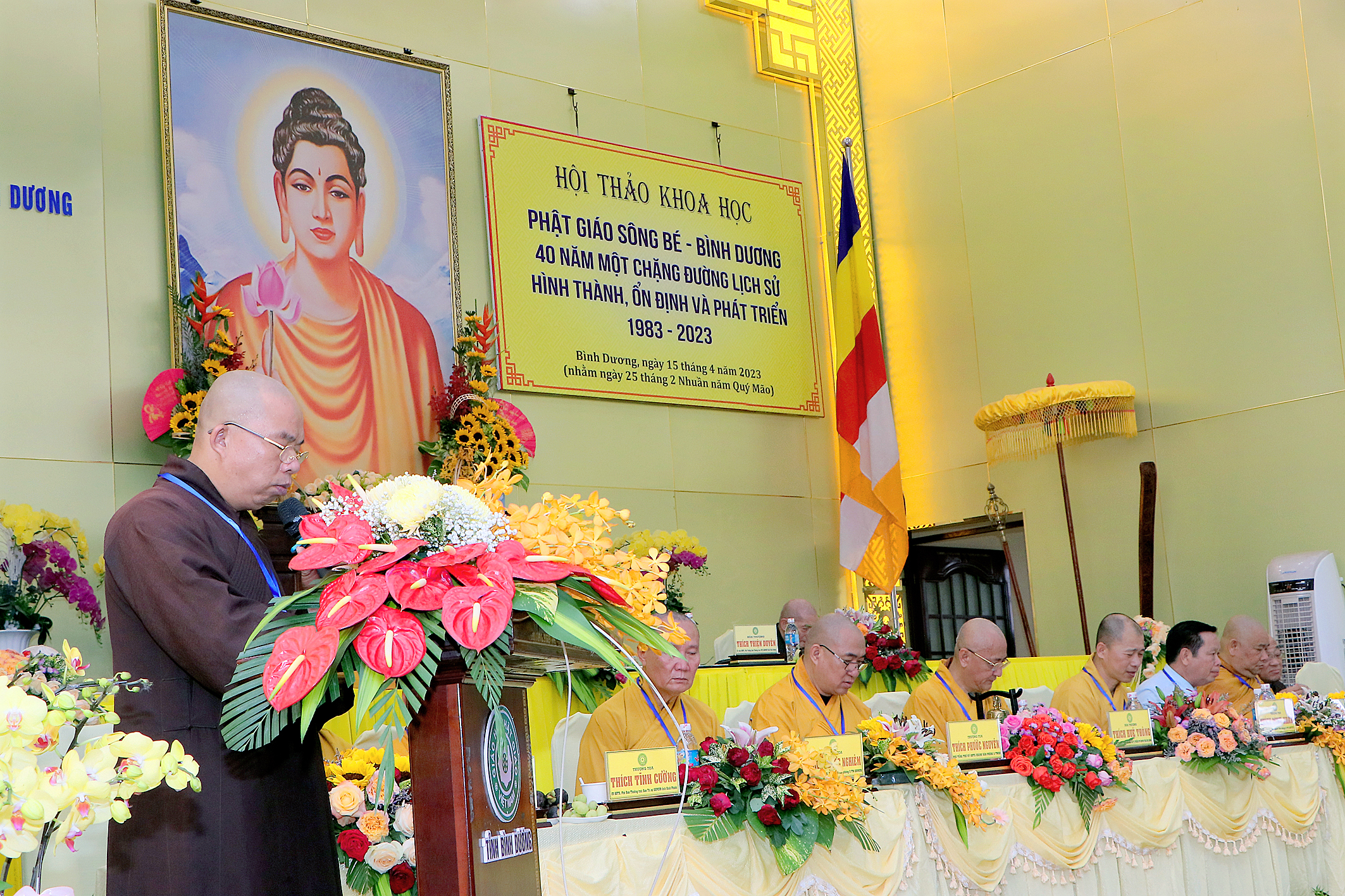 Phát biểu khai mạc Hội thảo, Hòa thượng Thích Huệ Thông đã điểm lại quá trình hình thành và phát triển trải dài suốt 40 năm của GHPGVN Sông Bé - Bình Dương, ý nghĩa và vai trò to lớn của sự ra đời tổ chức thống nhất Phật giáo Việt Nam. Qua đây, Hòa thượng cũng bày tỏ mong muốn chư Tôn đức, các học giả cùng thảo luận, góp ý nhằm đưa ra tầm nhìn và hướng đi cho sự phát triển của Giáo hội trong thời đại mới.