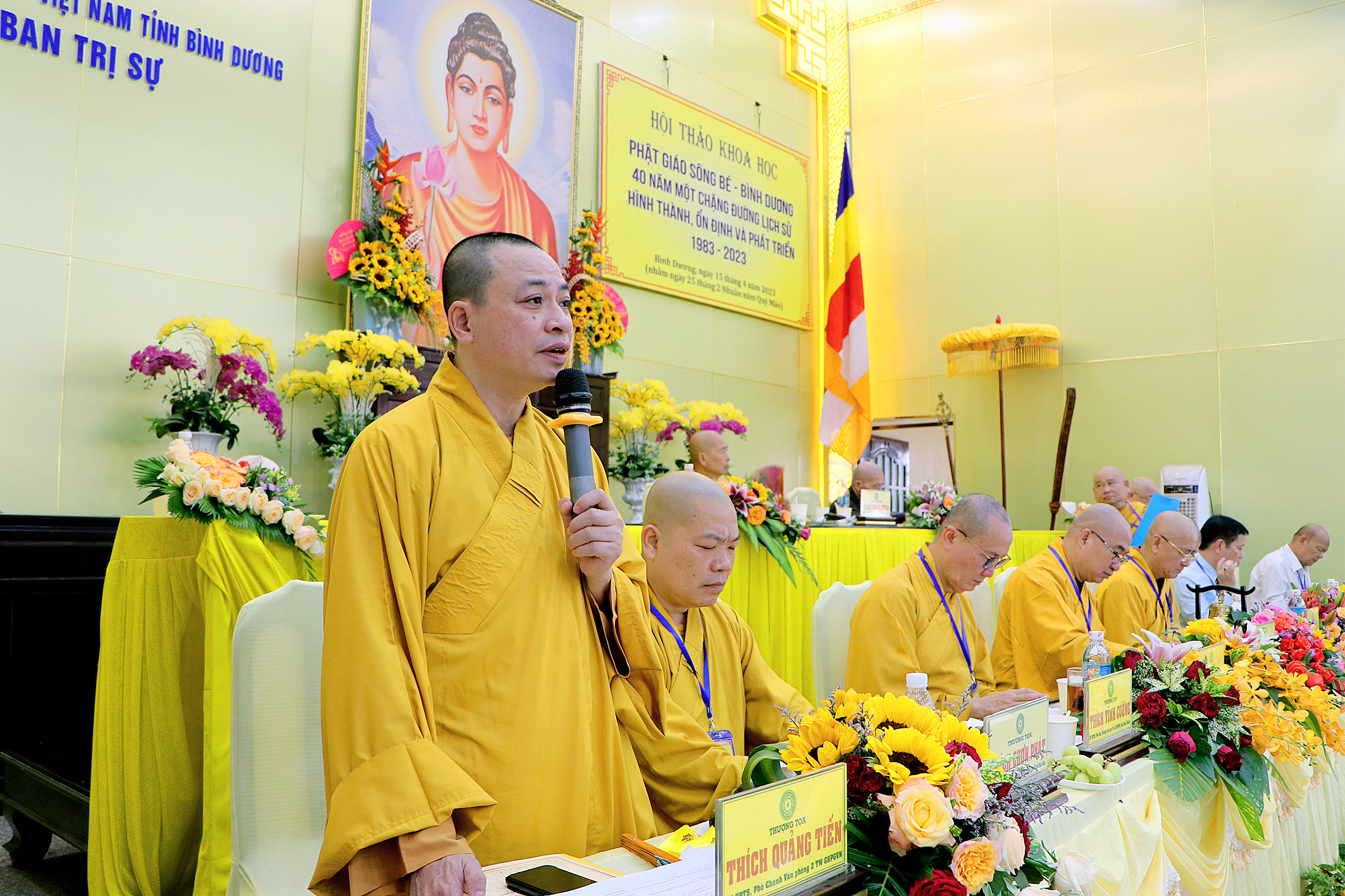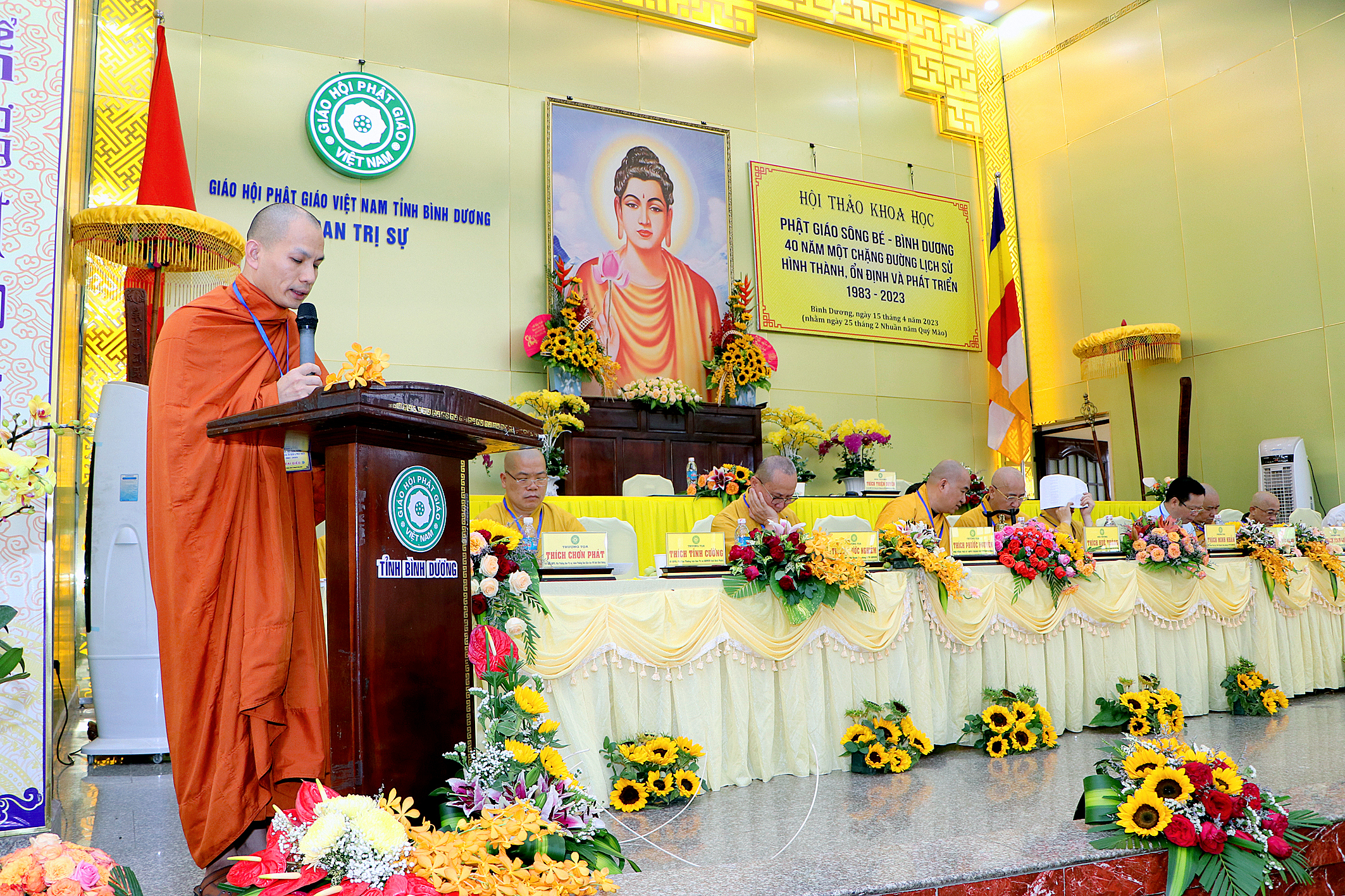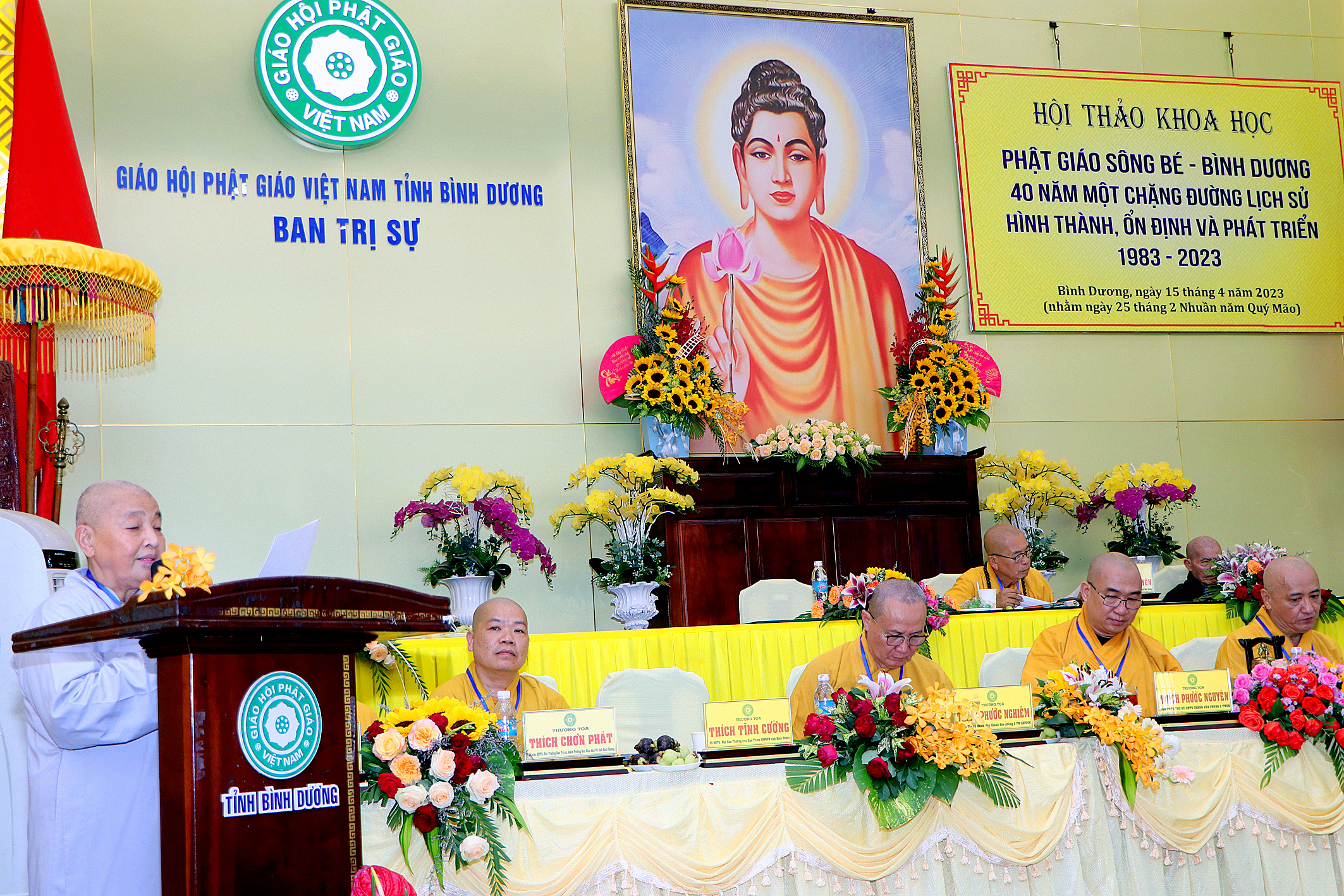 Hội thảo khoa học "Phật giáo Sông Bé - Bình Dương, 40 năm một chặng đường lịch sử, hình thành, ổn định và Phát triển" Đây là dịp để thế hệ hậu bối tri ân công đức của các bậc danh Tăng Phật giáo Việt Nam trong sự nghiệp ổn định và phát triển PGVN, góp phần to lớn vào công cuộc thống nhất Phật giáo, tô đậm thêm bản sắc hoà quang đồng trần, gắn bó, đồng hành với dân tộc của Phật giáo Việt Nam.