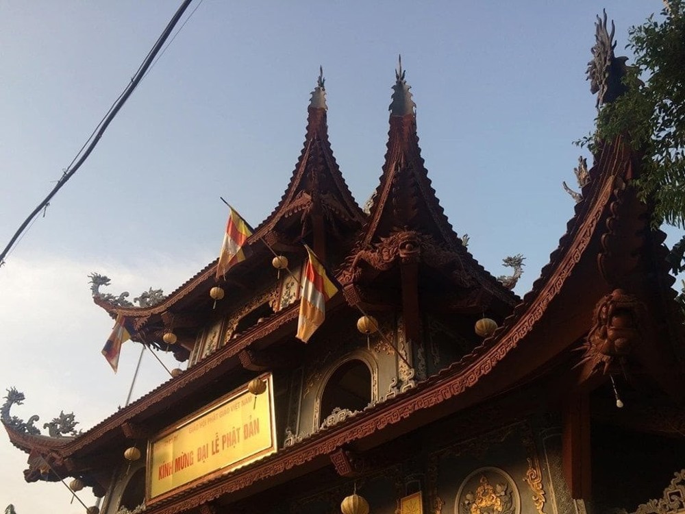 Ngay mặt đường Giải Phóng, cổng Tam Quan ba tầng với mái cong, chạm khắc hình rồng phượng tinh xảo là điểm nhấn đầu tiên gây ấn tượng. Tầng trên cùng treo một quả chuông đồng lớn. Bước qua cánh cổng này, mọi ồn ào của phố thị dường như được để lại phía sau, mở ra một không gian thiền tự tĩnh lặng.