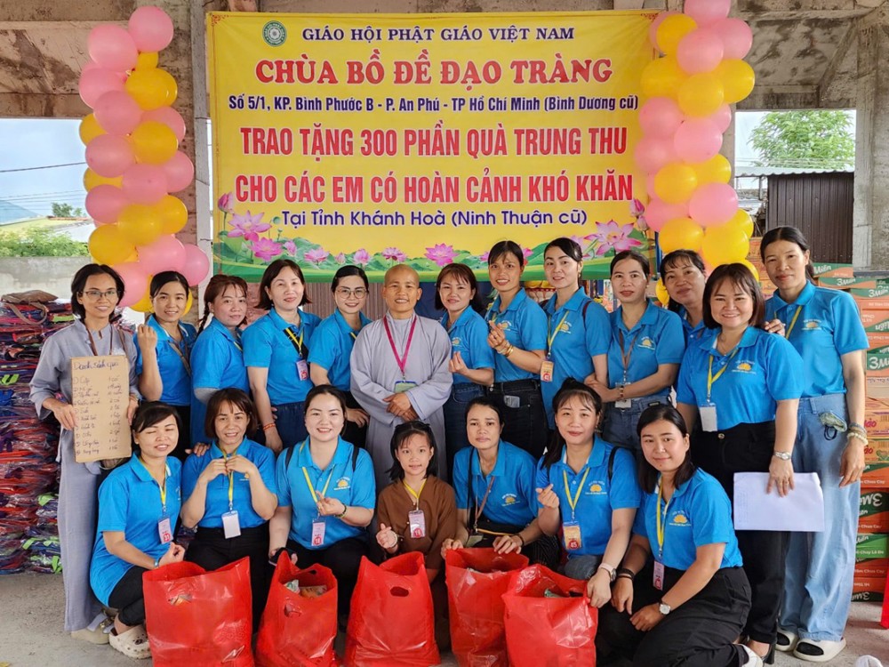 Được sự hướng dẫn của Ni sư Thích nữ Từ Thảo - Ủy viên HĐTS, Phó trưởng Phân ban kiêm Trưởng ban Pháp chế Phân ban Ni giới T.Ư, Phó ban Trị sự kiêm Phó ban Thường trực Ban Kinh tế Tài chánh GHPGVN TP.HCM, Trụ trì Chùa Bồ Đề Đạo Tràng. Chư Ni và quý Phật tử trong đạo tràng Chùa Bồ Đề Đạo Tràng đã trao tặng hơn 300 phần quà Trung thu, mỗi phần quà trị giá 400 nghìn đồng, tổng trị giá phần quà là 120 triệu đồng, với mong muốn mang đến cho các em thiếu nhi nhất là trẻ em có hoàn cảnh khó khăn có một mùa Trung thu trọn vẹn, ấm áp và đủ đầy.