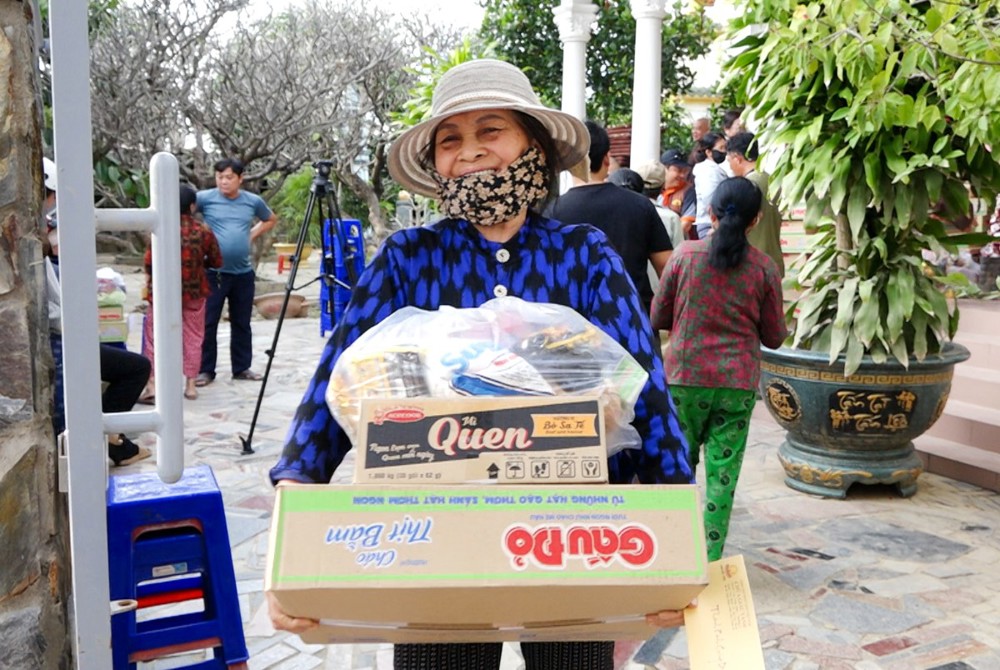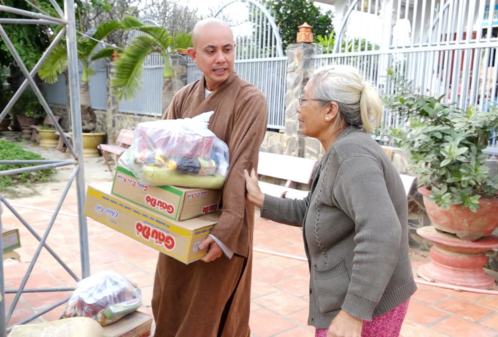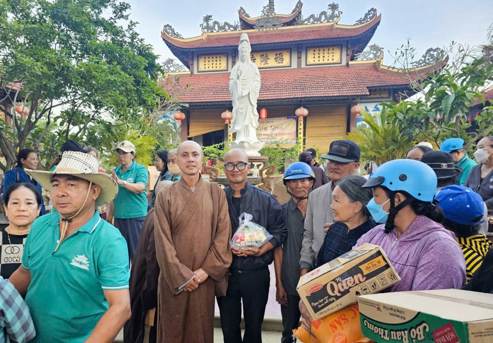 Tiếp đó, tại chùa Bửu Vân (phường Đô Vinh, tỉnh Khánh Hòa – trước đây thuộc Ninh Thuận), đoàn tiếp tục gửi tặng 110 phần quà. Mỗi phần quà gồm tiền mặt, gạo, mì và nhiều nhu yếu phẩm thiết yếu, góp phần giúp bà con sớm vượt qua khó khăn sau thiên tai.