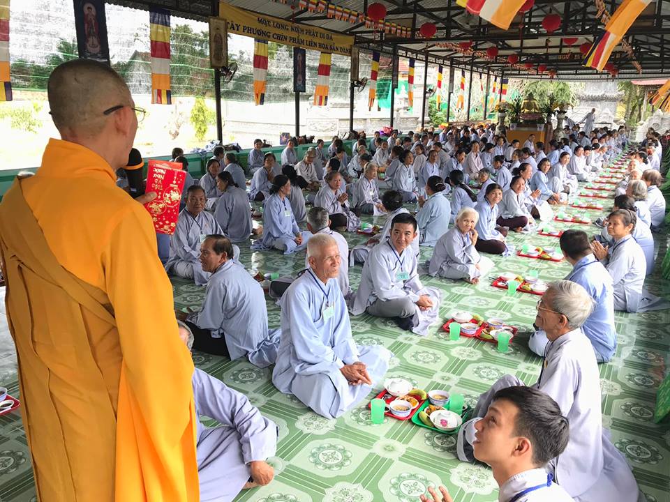 Sau thời Pháp thoại, chư Tôn đức bổn tự đã hướng dẫn đạo tràng Niệm Phật, Kinh hành, cúng Ngọ và thọ trai.