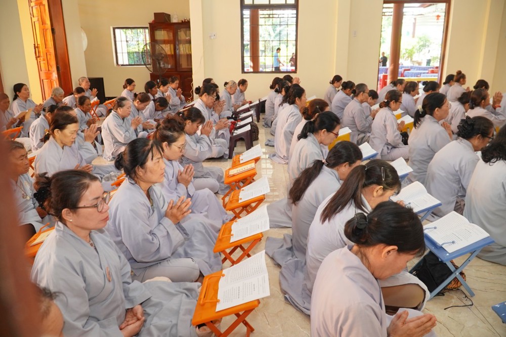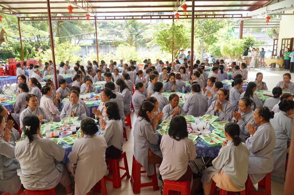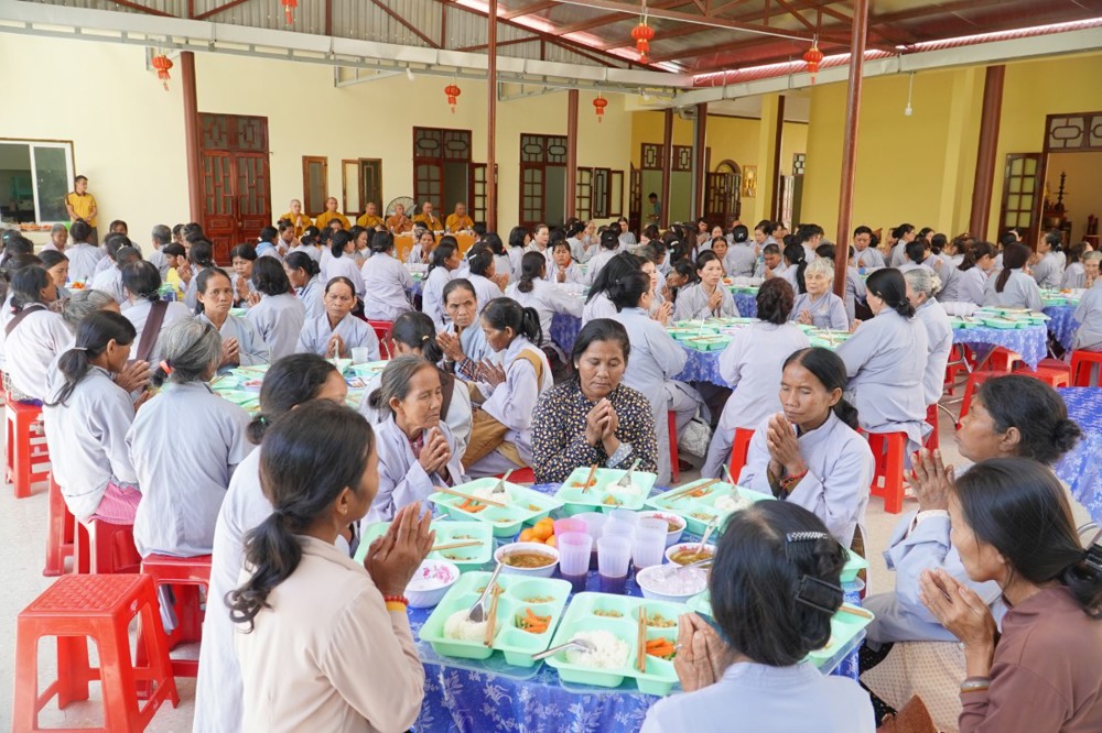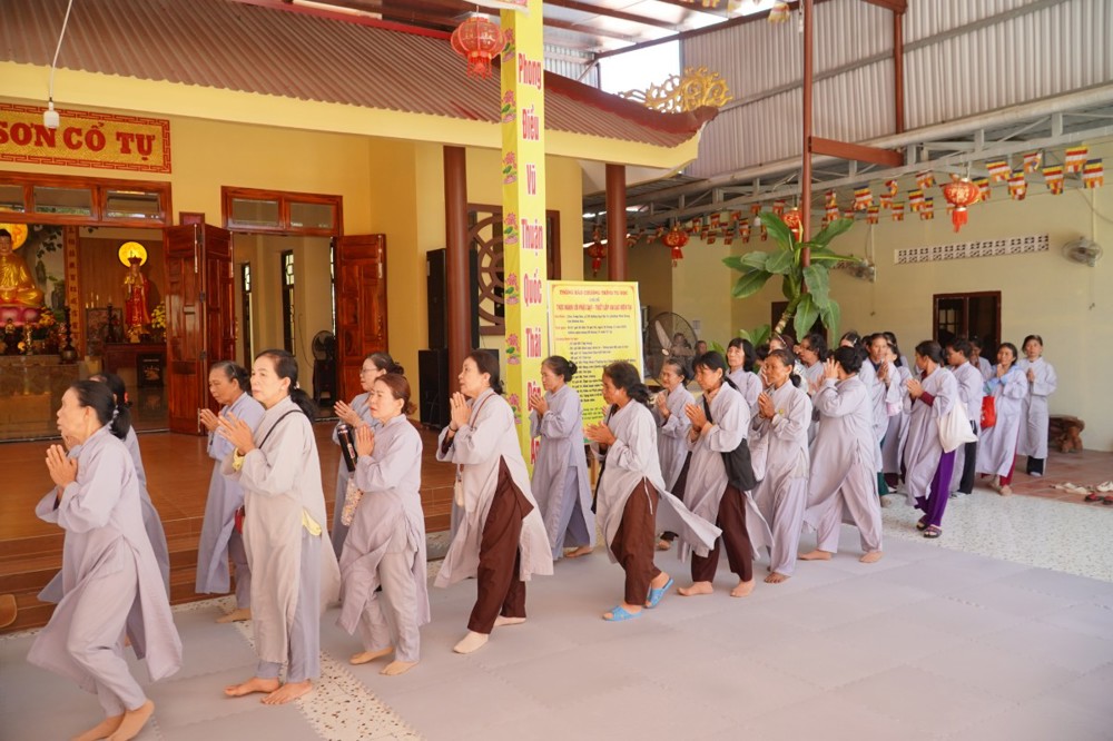 Sau thời pháp thoại, chư Tôn đức và hành giả Phật tử cử hành nghi thức quá đường, thọ trai và kinh hành niệm Phật trong chánh niệm.