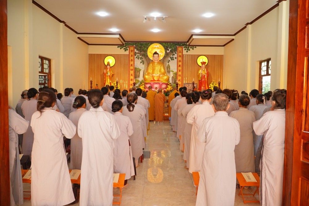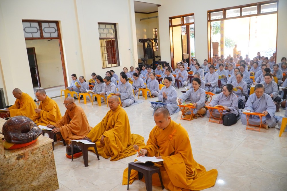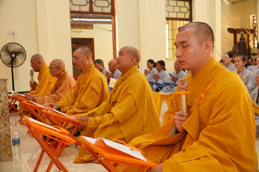 Tiếp theo chương trình, chư Tôn đức Ban Tổ chức cùng quý hành giả Phật tử tụng kinh Sám hối sáu căn.