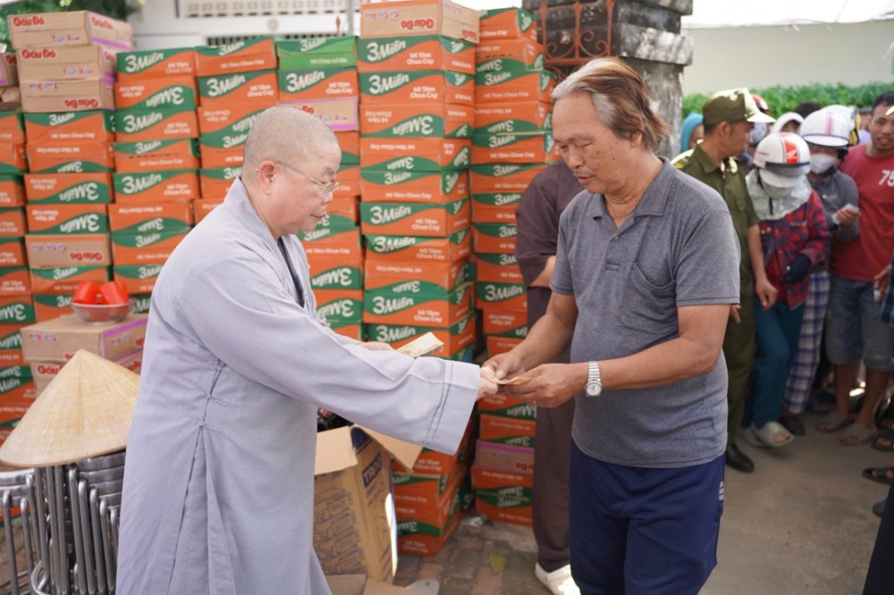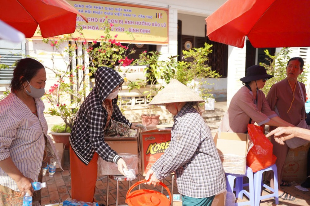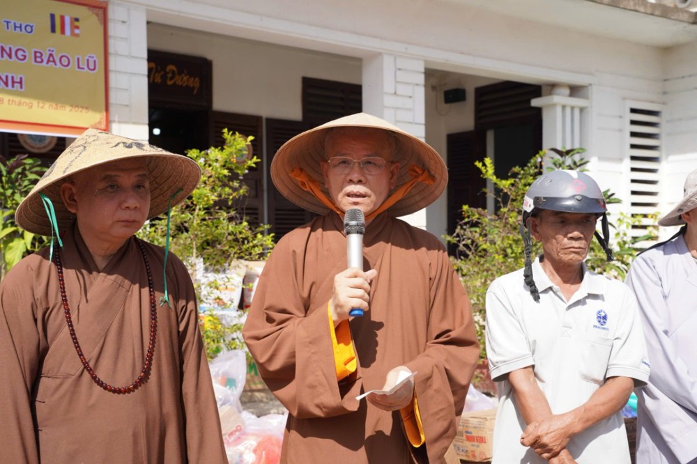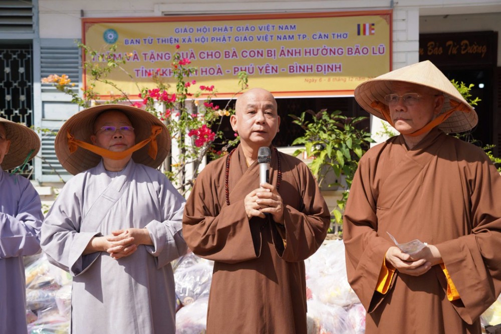 Phát biểu tại buổi trao quà, Thượng toạ Thích Minh Thông – Phó ban BTS, Trưởng ban TTXH Phật giáo Cần Thơ cho biết, được sự chỉ đạo từ Trung ương Giáo hội và Thường trực BTS TP. Cần Thơ, đoàn đã nhanh chóng lên đường đến với bà con vùng lũ. Thượng toạ chia sẻ, tuy những phần quà vật chất không lớn nhưng đó là tấm lòng từ bi của Tăng Ni, Phật tử cùng đồng bào cả nước, với mong muốn phần nào giúp bà con vơi bớt khó khăn và sớm ổn định cuộc sống sau thiên tai.