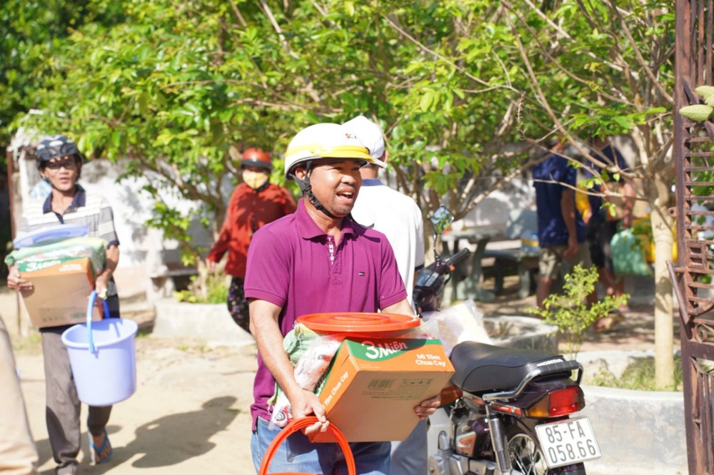Thay mặt Thường trực BTS tỉnh Khánh Hoà, Thượng toạ Thích Thông Huệ bày tỏ lòng tri ân sâu sắc đến phái đoàn từ phương Nam đã không quản đường xa mang yêu thương ra vùng lũ. Đây cũng là đoàn từ thiện đầu tiên đến hỗ trợ người dân sau trận lũ lịch sử. Dù không thiệt hại về người và tài sản, nhưng toàn bộ cây trồng, vật nuôi bị cuốn trôi khiến đời sống bà con rơi vào cảnh khó khăn, thiếu thốn.