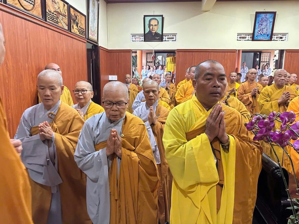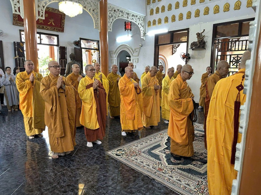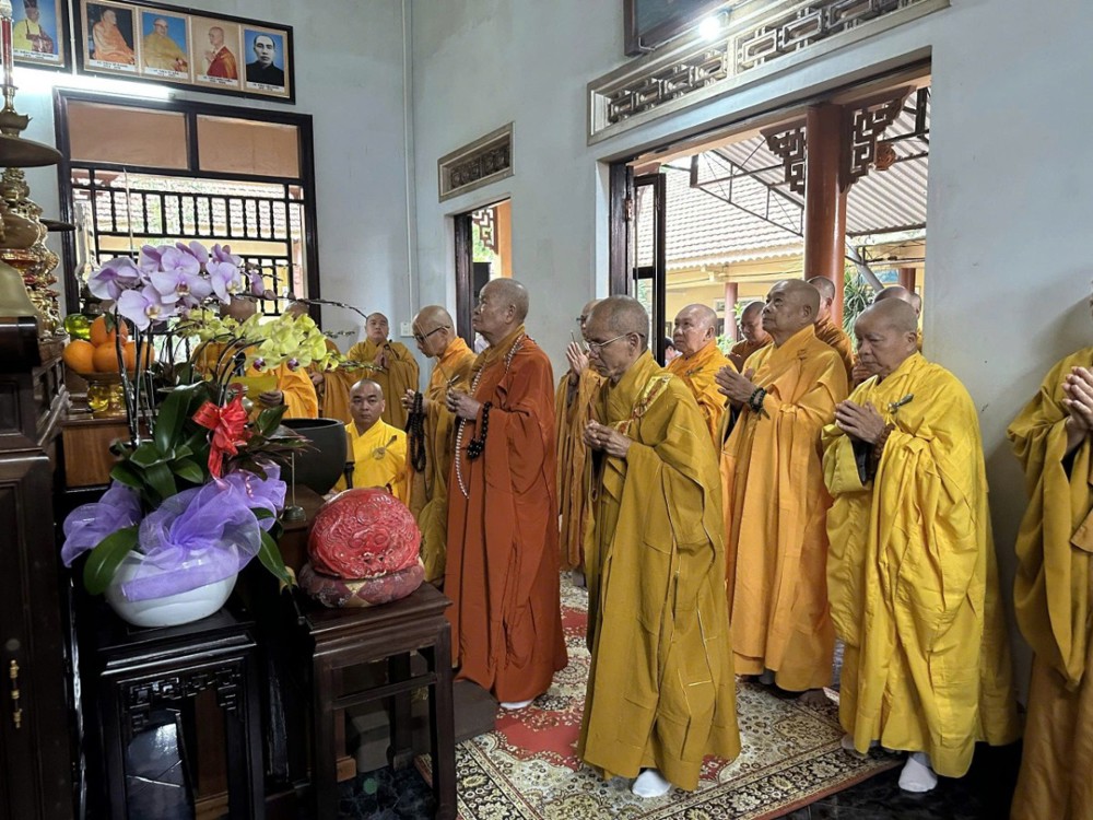 Tại chánh điện, chư Tôn đức chứng minh niêm hương bạch Phật, đảnh lễ Tam bảo và nhất tâm cầu nguyện Giác linh Hòa thượng Thích Ngộ Tánh cao đăng Phật quốc.
