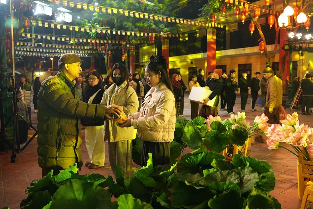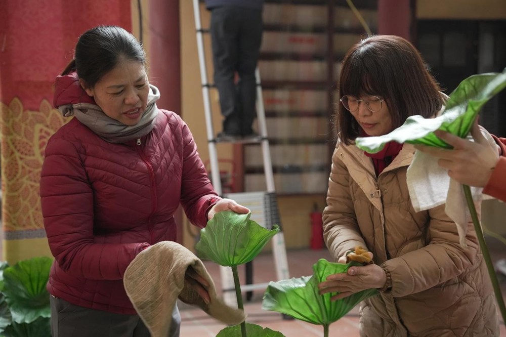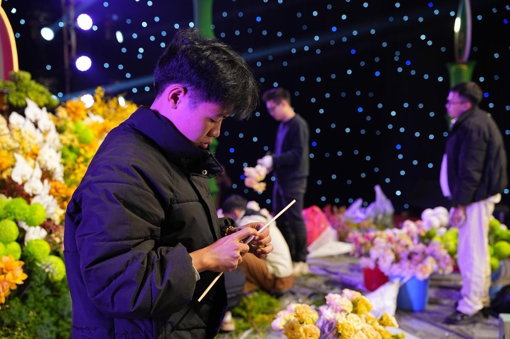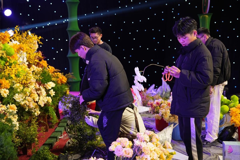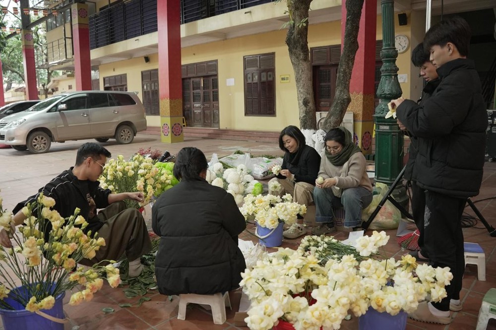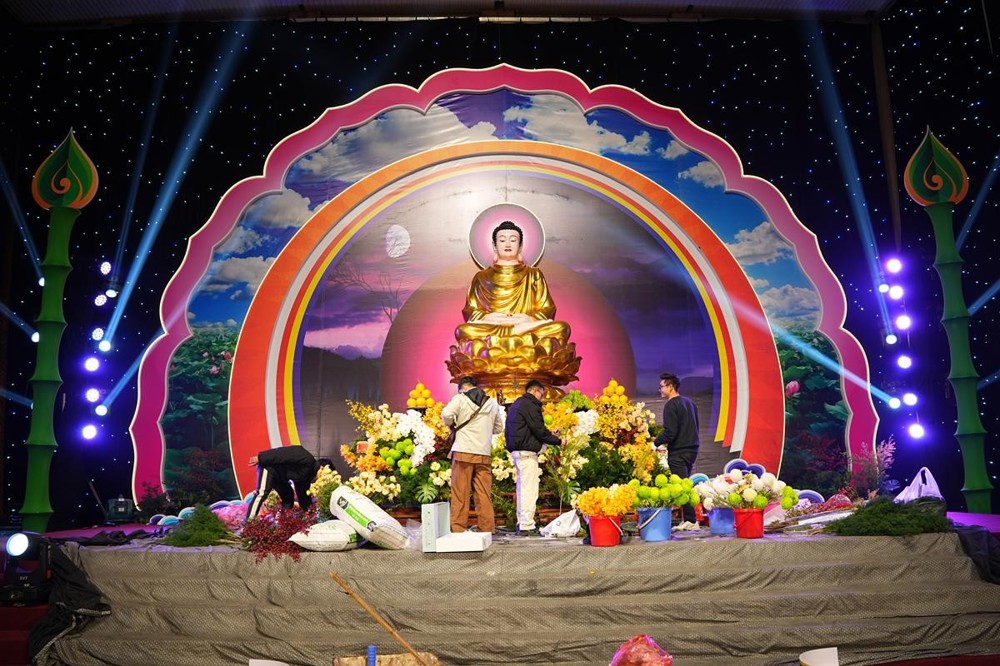 Ngày mai, chương trình sẽ chính thức diễn ra, công tác chuẩn bị đã dần đi vào những khâu hoàn thiện cuối cùng. Khắp khuôn viên chùa, đâu đâu cũng thấy sự tất bật nhưng đầy hoan hỷ. Đội cắm hoa miệt mài chọn từng cành hoa, chỉnh từng sắc màu, chăm chút cho sân khấu thêm phần trang nghiêm và lung linh – như dâng lên Tam Bảo tất cả tấm lòng chí thành của người con Phật.