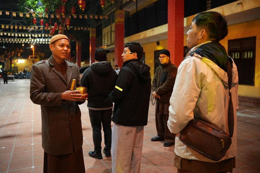 Bên cạnh đó, hình ảnh các bác Phật tử Đạo tràng Pháp Hoa, các bạn trẻ trở về chùa chấp tác cùng quý Thầy đã tạo nên một bức tranh thật đẹp của tinh thần phụng sự. Người quét dọn, người sắp xếp kinh kệ, người chuẩn bị không gian cho các hoạt động ngày mai… mỗi việc làm tuy nhỏ nhưng đều thấm đượm tâm nguyện gieo duyên lành nơi cửa Phật.