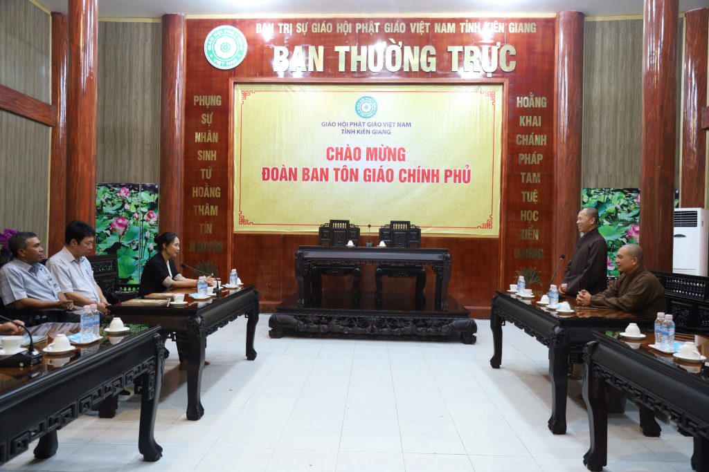 Phái đoàn Ban Tôn giáo Chính Phủ do bà Trần Thị Minh Nga - Phó trưởng Ban Tôn giáo Chính phủ làm trưởng đoàn, cùng các thành viên trong đoàn Ban Tôn giáo Chính phủ. Tháp tùng cùng đoàn có ông Danh Lắm - Trưởng ban Tôn giáo tỉnh Kiên Giang