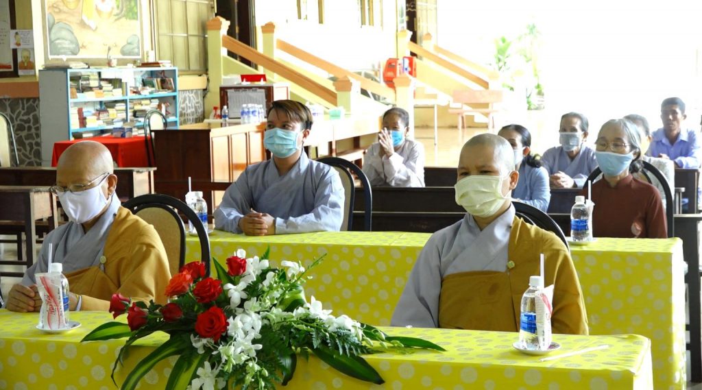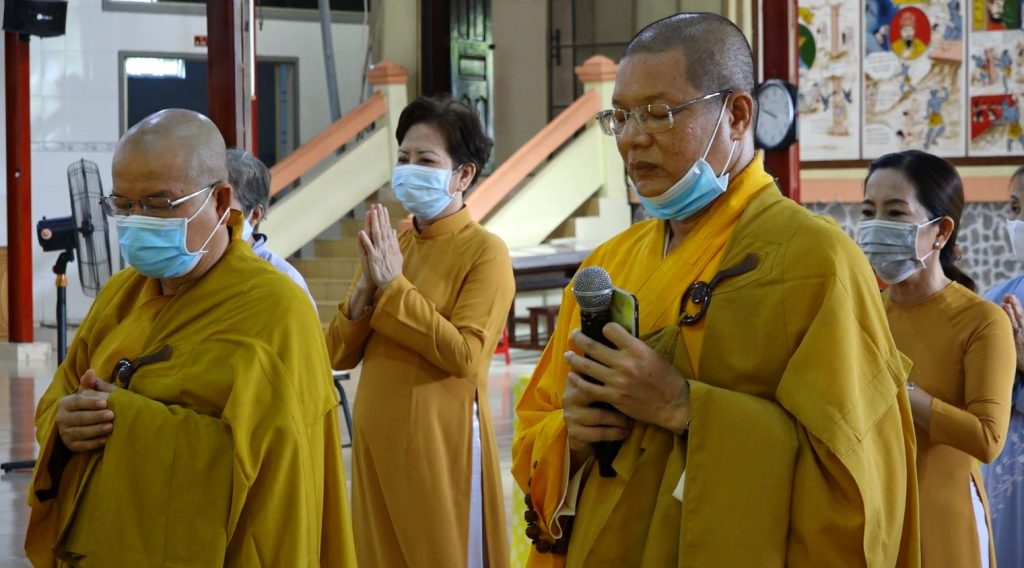 Trước lễ đài trang nghiêm, thanh tịnh, toàn thể chư Tôn đức Tăng Ni, Phật tử đã thực hiện nghi lễ cúng dường Phật đản theo truyền thống. Đồng tụng kinh Chuyển Pháp Luân và cầu nguyện cho đại dịch Covid-19 mau chóng kết thúc, thế giới hòa bình, chúng sanh an lạc.