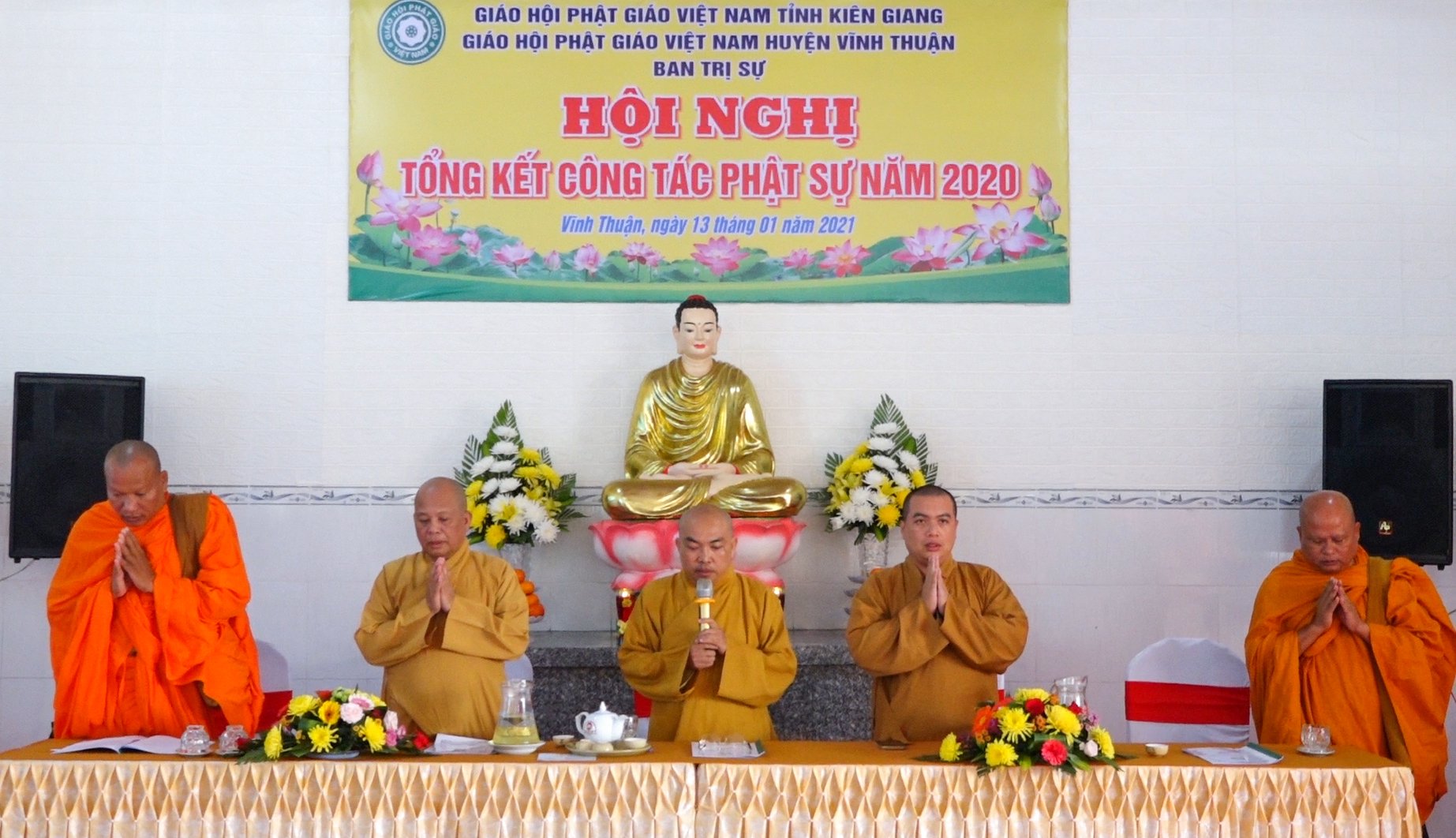 ĐĐ. Danh Dung, báo cáo tổng kết công tác Phật sự năm 2020Báo cáo nêu rõ, năm 2020 là năm thứ tư sau nghị quyết Đại Hội Phật Giáo Việt Nam các cấp nhiệm kỳ 2016 - 2021, thường trực BTS Phật giáo huyện Vĩnh Thuận và đại diện các cơ sở thờ tự trong huyện đã tích cực xây dựng tinh thần tương thân tương ái, tham gia các hoạt động từ thiện xã hội, xây dựng nông thôn mới, đô thị văn minh, thực hiện tốt chính sách an sinh xã hội của Đảng, Nhà Nước và Mặt Trận các cấp.