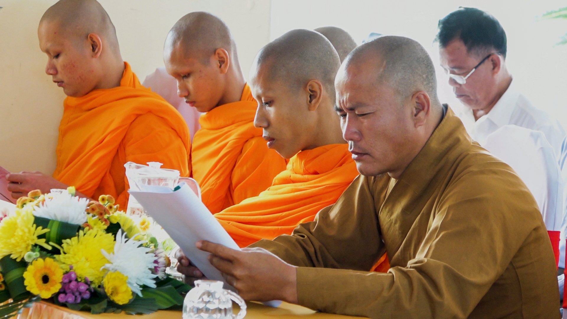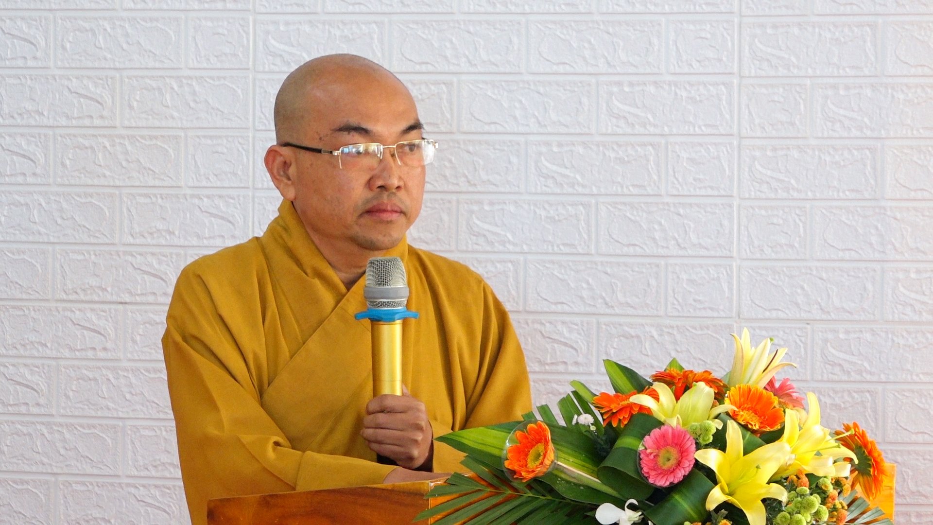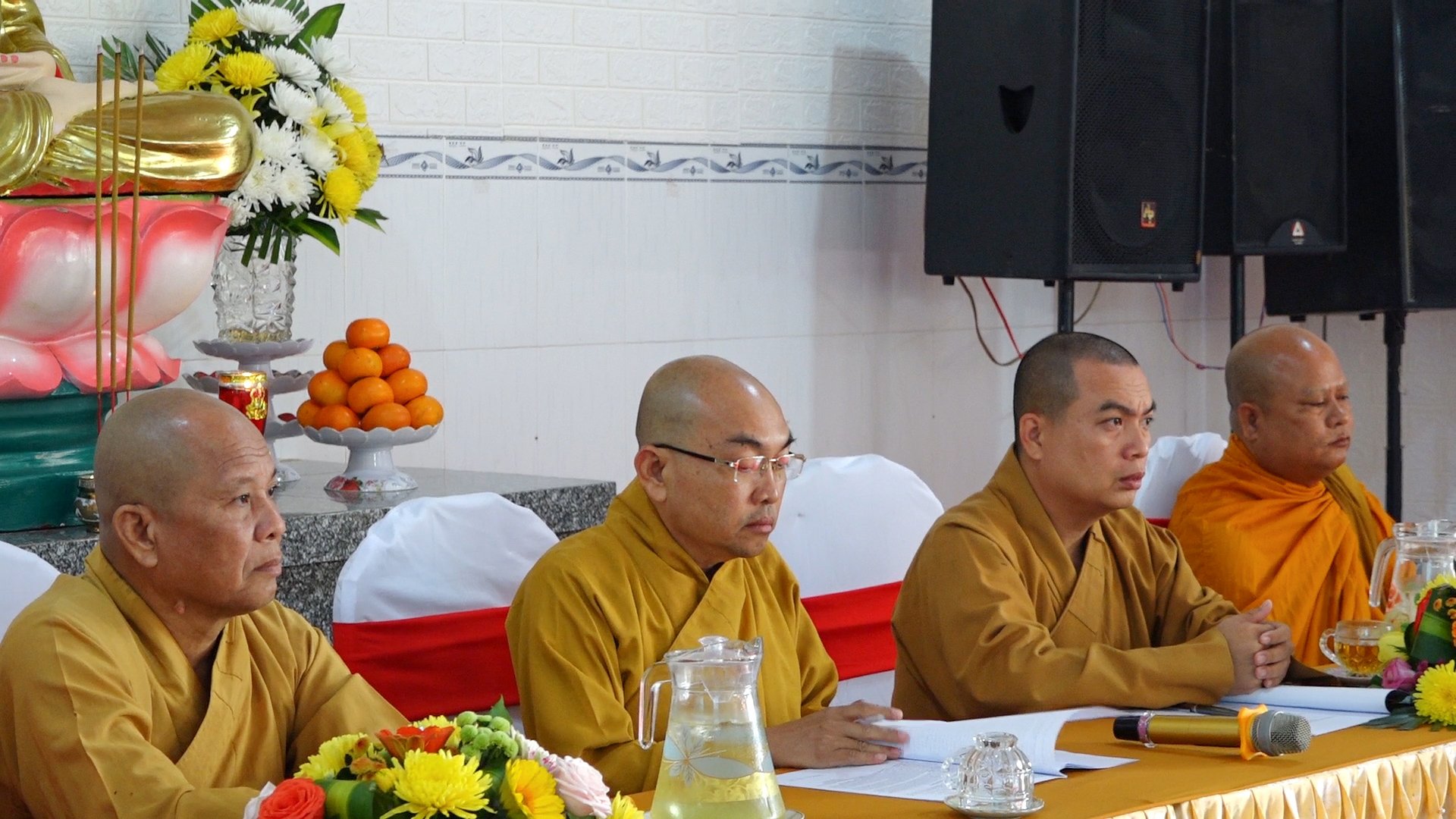 TT. Danh Cảnh, phát biểu khai mạcTiếp đó, ĐĐ. Danh Dung tuyên đọc báo cáo tổng kết công tác Phật sự năm 2020 của BTS PG huyện Vĩnh Thuận.