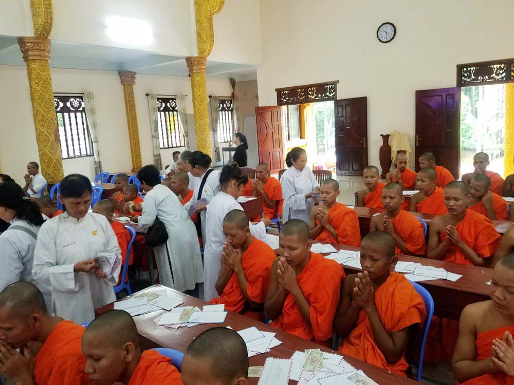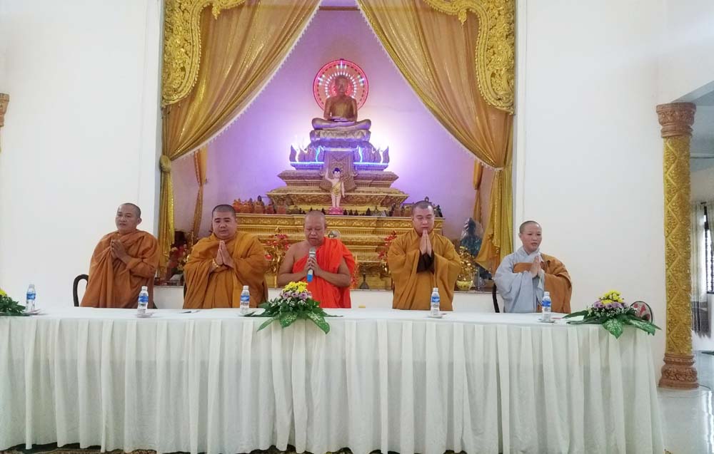 Đón tiếp đoàn có TT.Danh Phản – UV HĐTS GHPGVN, Phó trưởng BTS GHPGVN tỉnh, Phó Chủ tịch hội ĐKSSYN tỉnh, Trụ trì chùa RĀJAKUSALA-PAṂBEÑJAEY XOĀY (chùa Sóc Xoài) cùng chư Tăng đang nhập hạ tại chùa.