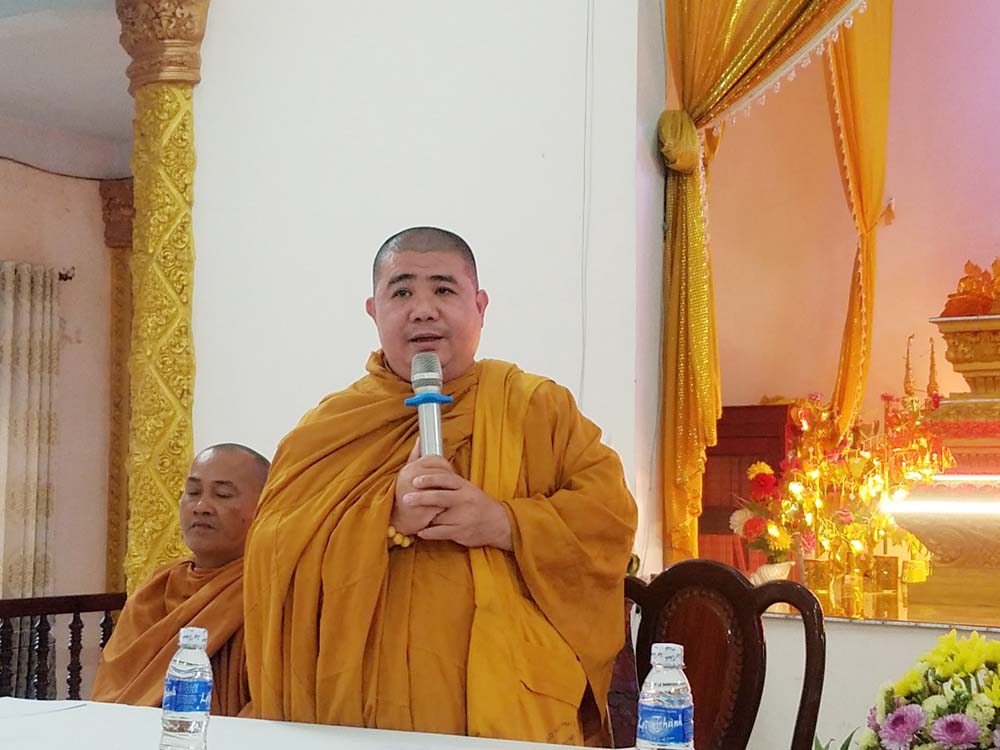 Đại đức Thích Minh Khải thay mặt đoàn hỏi thăm và chúc sức khỏe tới TT. Danh Phản cùng toàn thể chư Tôn đức Tăng đang an cư tại đây. Hy vọng sau 3 tháng an cư, các hành giả sẽ mang những gì mình học được phát huy để hướng dẫn cho Phật tử sinh hoạt tu học theo đúng chánh pháp cũng như chấp hành đầy đủ các chủ trương chính sách, pháp luật của nhà nước.