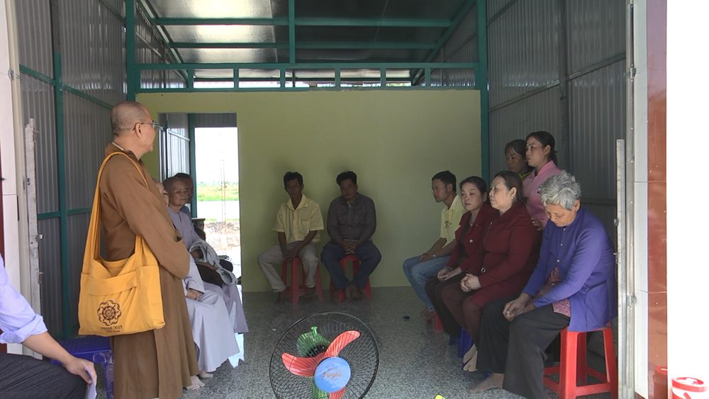 Thay mặt cho GHPGVN tỉnh Kiên Giang ĐĐ.Thích Tuệ Giải vui mừng và hoan hỷ vì 3 căn nhà đã hoàn thiện để trao cho các hộ gia đình, Đại Đức cũng gửi lời tri ân đến chính quyền địa phương đã tạo điều kiện thuận lợi cho việc xây dựng 3 căn nhà hoàn thành đúng tiến độ để trao tặng đến người dân. Qua đây Đại Đức cũng tán thán công đức của 2 Sư Cô trụ trì đã quan tâm giúp đỡ kịp thời giúp cho người dân có chỗ An Cư thực hiện chủ trương của GHPGVN “Phụng Sự Chúng Sanh Là Thiết Thực Cúng Dường Chư Phật” .Cuối cùng Đại Đức căn dặn các gia đình cố gắng lo làm ăn, nuôi dạy con cái thật tốt, Đại Đức cũng khuyên các gia đình nên làm nhiều việc thiện, nên đi chùa để gieo duyên với tam bảo để có những phước lành về sau.