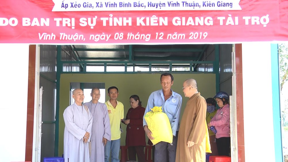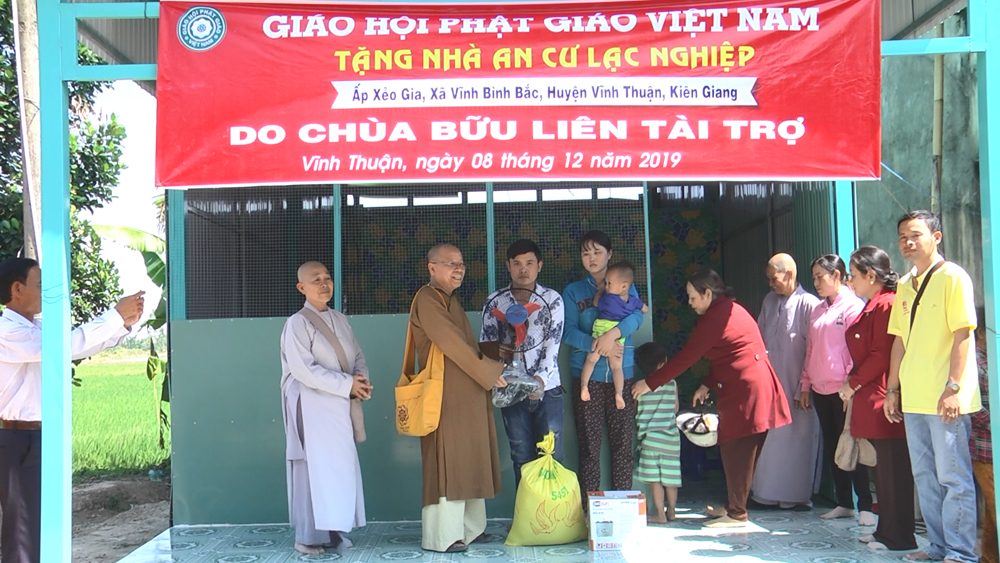 Ba căn nhà “An Cư Lạc Nghiệp” lần này được trao cho gia đình ông Danh Quý 54 tuổi, gia đình ông Dương Văn Tuấn 42 tuổi và gia đình anh Nguyễn Văn Hồng 27 tuổi cả 3 đều ngụ tại ấp Xẻo Gia, xã Vĩnh Bình Bắc, Huyện Vĩnh Thuận, tỉnh Kiên Giang. Được biết cuộc sống của 3 hộ gia đình còn gặp nhiều khó khăn, công việc hàng ngày chỉ làm mướn và làm ruộng đời sống rất bấp bênh.Tháng 9 vừa qua một cơn giông bão đi qua đã càn quét ba căn nhà bị hư hại nặng và sập hoàn toàn càng khiến cho cuộc sống của ba gia đình càng trở nên khốn khó. Trước tình hình đó GHPGVN tỉnh đã kết hợp với BTS Huyện, Chùa Bửu Liên hỗ trợ xây mới 3 căn nhà cho các gia đình có chỗ An Cư, mỗi gia đình được hỗ trợ 45 triệu đồng.