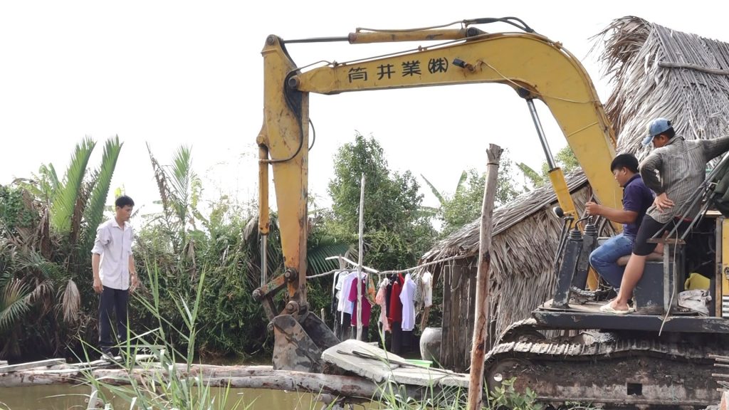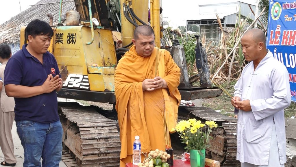 Sau nghi thức tụng kinh và dâng hương là lễ động thổ chuẩn bị cho việc xây dựng cầu mới.