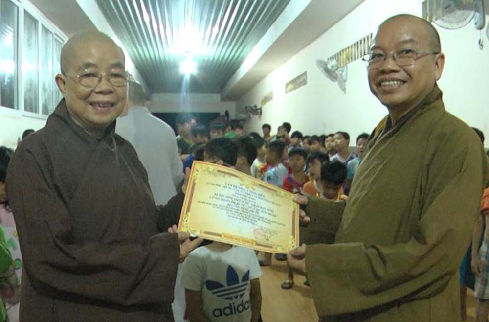 Thay mặt Ban Giám đốc Trung Tâm TTXH Phật Quang, ĐĐ. Thích Tuệ Giải tặng giấy cảm tạ và chia tay với đoàn.