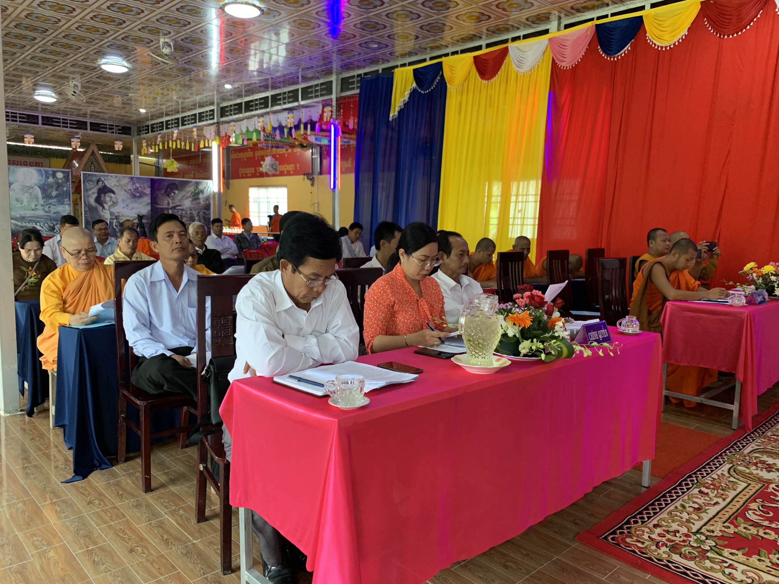 Quang lâm chứng minh và tham dự hội nghị có TT. Thích Phước Thắng - Phó BTS GHPGVN tỉnh Kiên Giang; TT. Danh Phản – Phó BTS GHPGVN tỉnh Kiên Giang, Phó Chủ tịch Hội ĐKSSYN tỉnh Kiên Giang; ĐĐ. Thích Pháp Trí - Chánh Thư ký BTS GHPGVN tỉnh Kiên Giang; TT. Danh Nâng - Trưởng ban BTS GHPGVN huyện An Biên, Phó Chủ tịch kiêm Chánh Thư ký Hội ĐKSSYN tỉnh Kiên Giang; NS. Thích Nữ Thoại Liên - Phó Trưởng ban Thường trực BTS GHPGVN huyện An Biên; SC. Thích nữ Toàn Liên – Phó Trưởng ban kiêm Thủ quỹ BTS GHPGVN huyện An Biên cùng chư Tôn đức Tăng Ni BTS huyện và chư Tăng Ni các chùa trong huyện An Biên.