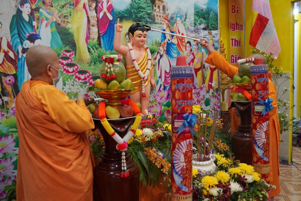 Đại đức Danh Song tuyên đọc ý nghĩa lễ Phật đản của Phó Chủ tịch HĐTS GHPGVN,Trưởng Ban Hoằng pháp Trung ương GHPGVNCuối buổi lễ Chư tôn Đức Tăng, Ni đã thực hiện nghi thức niêm hương bạch Phật, trì tụng kinh mừng khánh đản và lễ tắm Phật theo nghi thức truyền thống Phật giáo Nam và Bắc tông, kính mừng Phật đản PL. 2564 – DL. 2020 và cầu nguyện cho nạn dịch Covid-19 được tiêu trừ. Đất nước Việt Nam quốc thái dân an, sớm ổn định và phát triển kinh tế, người người nhà nhà an lạc.