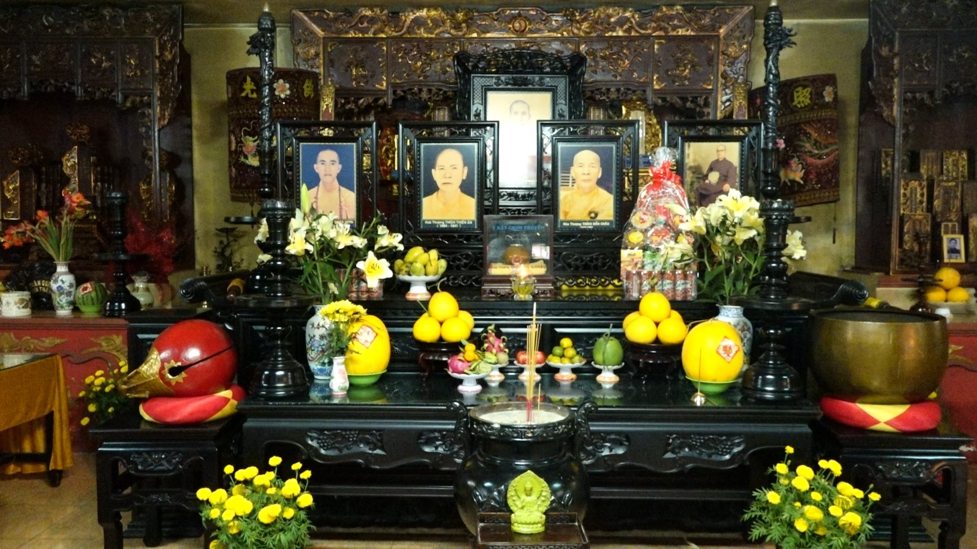 Tại đây, Ban Trị sự GHPGVN tỉnh đã thắp hương, đảnh lễ chư vị Tổ sư và khai kinh đầu năm.