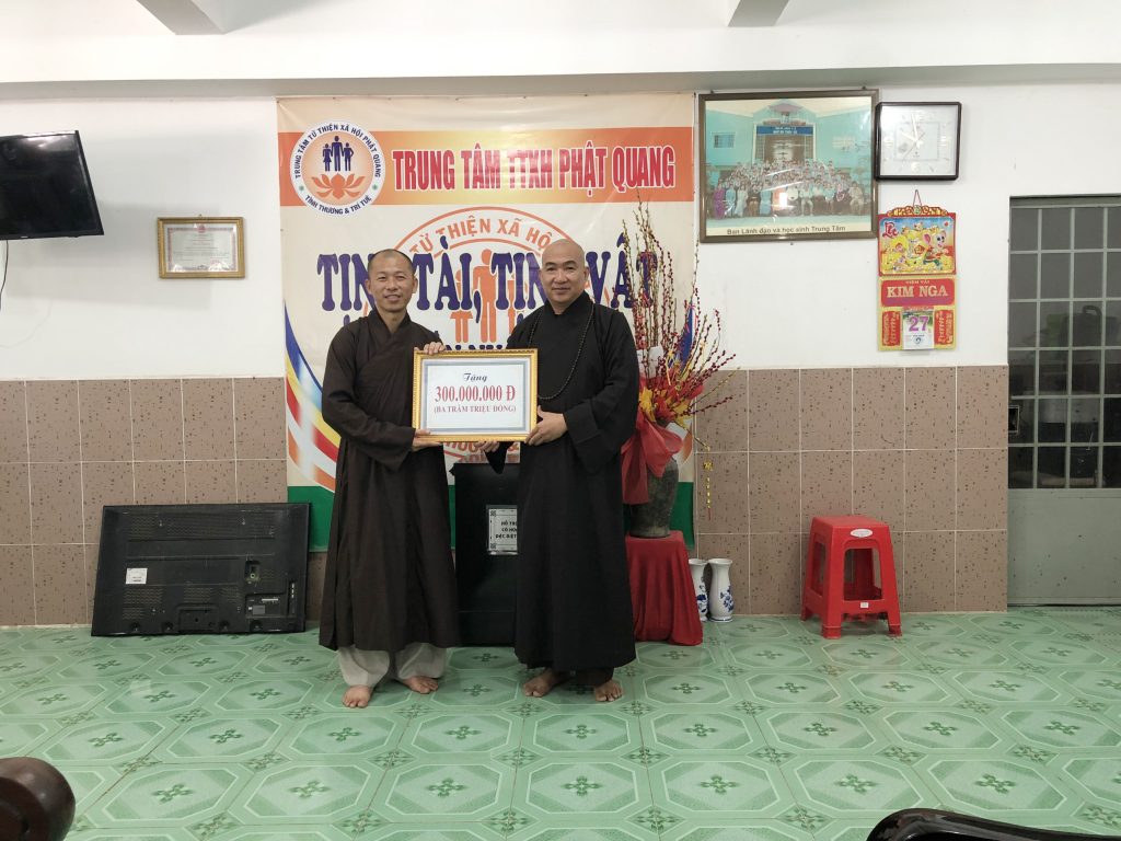 Nhân dịp đến thăm lần này, TT. Thích Phước Nguyên - Ủy viên Thường trực HĐTS, Phó chánh Văn phòng 2 TƯGH đã trao tặng 300 triệu đồng để hỗ trợ trong việc nuôi dạy trẻ em có hoàn cảnh đặc biệt khó khăn cũng như xây dựng các công trình phục vụ tại Trung tâm.