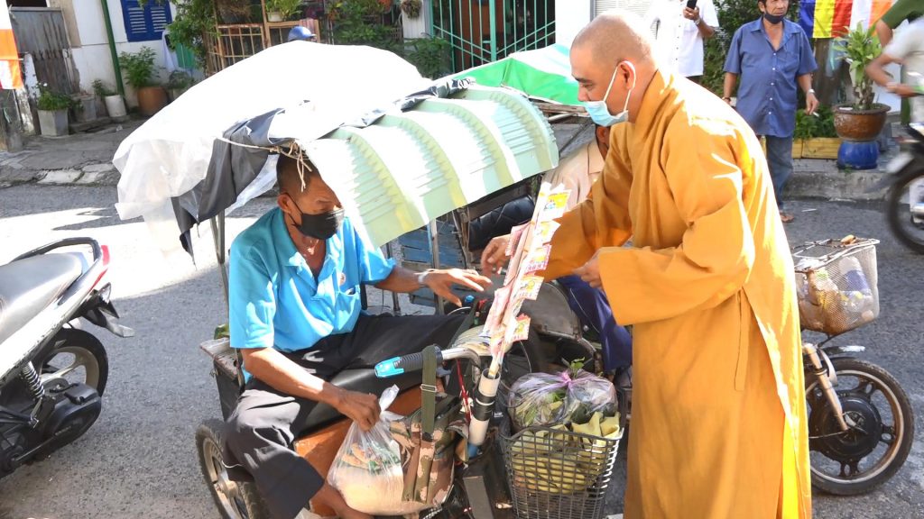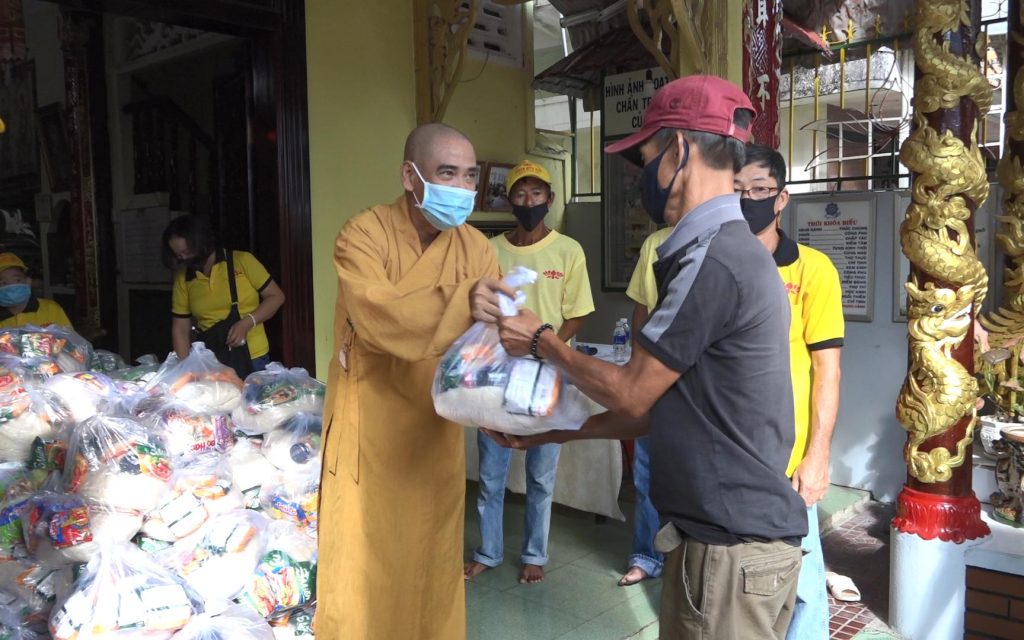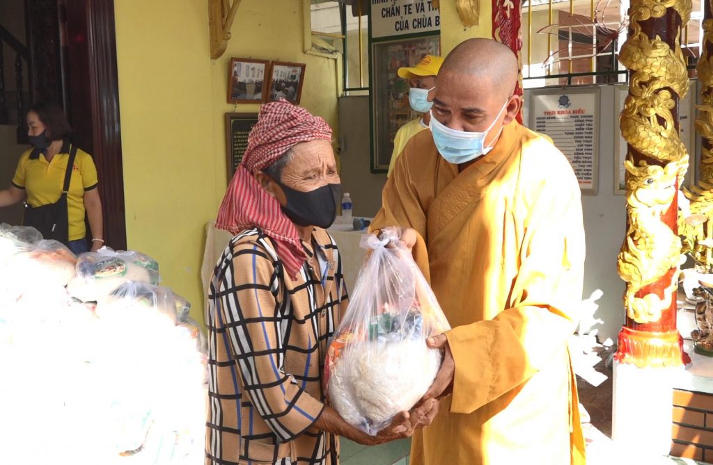 Tại đây TT. Thích Thiện Thành đã cùng Phật tử đạo tràng đã phát 1000 phần quà, 600 phần tại địa bàn Rạch Giá và 400 phần gởi tới bà con vùng sâu vùng xa của tỉnh. Mỗi phần quà gồm: 5kg gạo, 5 gói mì cùng nhu yếu phẩm. Tổng kinh phí trong đợt phát quà lần này là gần 100 triệu đồng do TT. Thích Thiện Thành vận động quý Phật tử cùng các Mạnh thường quân gần xa gởi tới bà con.