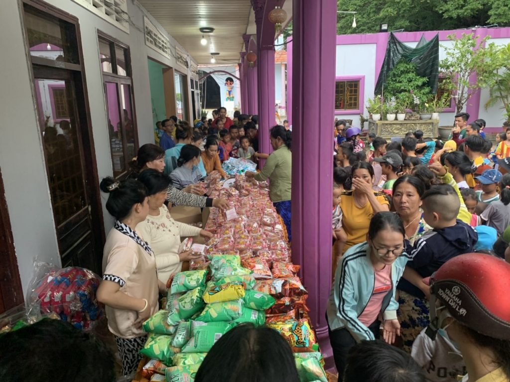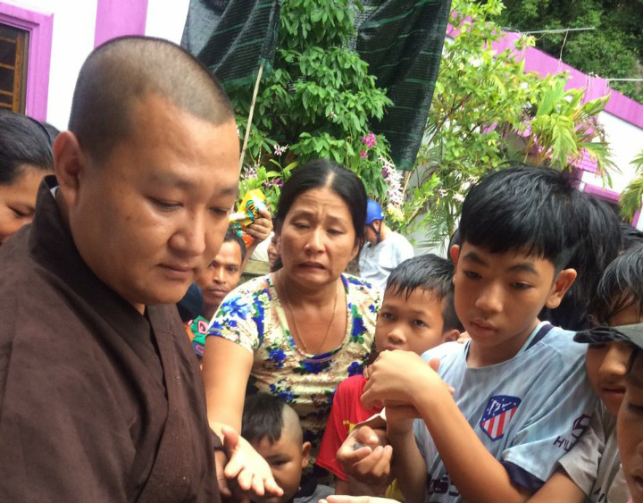 ĐĐ. Thích Tuệ Tiến trao quà đến các em thiếu nhi