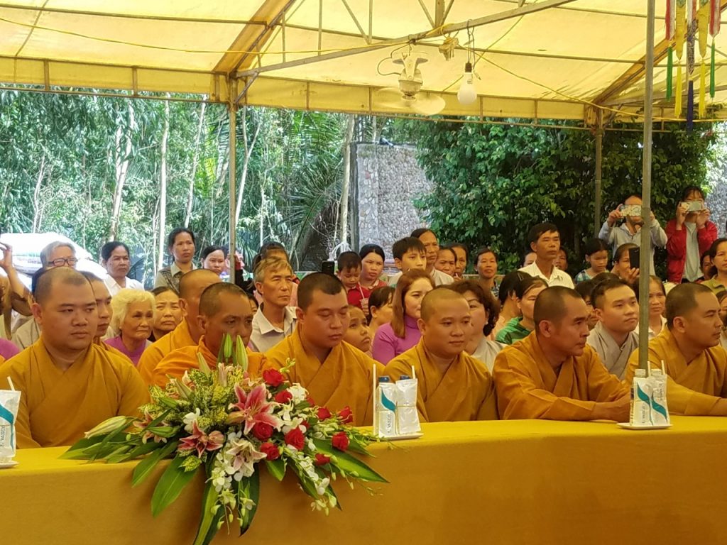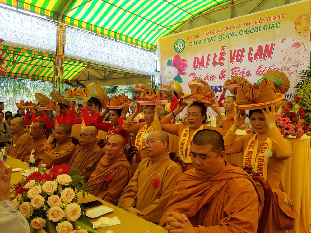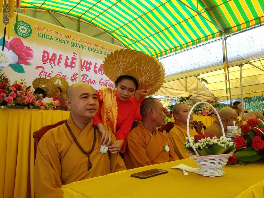 Quang lâm chứng minh có: HT. Thích Huyền Thông – Chứng Minh BTS GHPGVN tỉnh; TT. Thích Minh Nhẫn – UV HĐTS, Phó trưởng ban Thường trực BTS kiêm Trưởng ban Tăng sự GHPGVN tỉnh; ĐĐ. Thích Minh Khải – UV ban Từ thiện Xã hội (TTXH) TƯ, Trưởng ban TTXH GHPGVN tỉnh Kiên Giang; ĐĐ. Thích Tuệ Định - Ủy viên ban Phật giáo Quốc tế TƯ, Trưởng ban PGQT GHPGVN tỉnh Kiên Giang, Trụ trì chùa Phật Quang Chánh Giác, Trưởng ban Tổ chức; cùng chư Tôn đức Tăng – Ni trong BTS GHPGVN tỉnh, chư Tôn đức Tăng - Ni trụ trì các tự viện trong tỉnh, gia đình của Phât tử Khánh Phú và hơn 800 Phật tử đồng về tham dự.