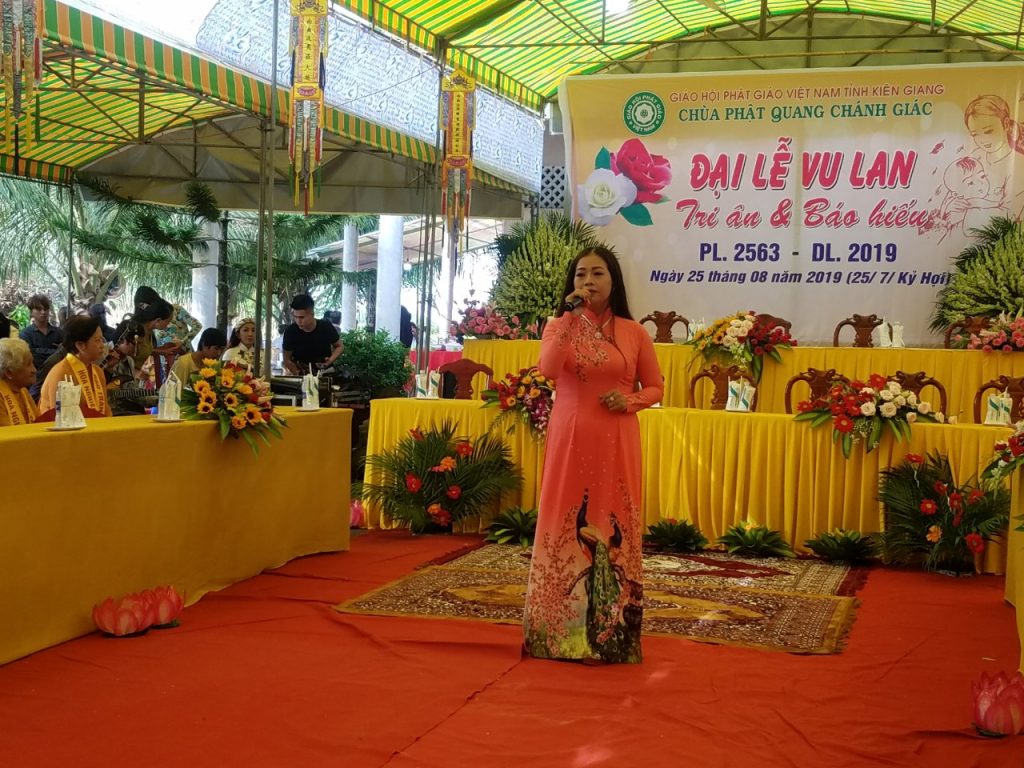 Mùa Vu Lan báo hiếu trở về, là hình ảnh thân thương của mẹ cha lại sáng ngời trong tâm hồn của người con Phật hơn bao giờ hết. Tại buổi lễ, Phật tử Quang Ngọc đại diện cho quý vị Phật tử có đôi lời cảm niệm về ngày lễ trọng đại thiêng liêng này, các Phật tử trang nghiêm, cung kính thực hiện nghi thức lễ bông hồng cài áo bày tỏ lòng kính quý trong mùa vu lan báo hiếu. Những người tham dự lễ đã xúc động khi được cài lên mình những bông hồng, của sự thương yêu, màu của bao vất vả, gian lao mà hai đấng sinh thành đã chắt chiu cho ta trưởng thành qua bao năm tháng.