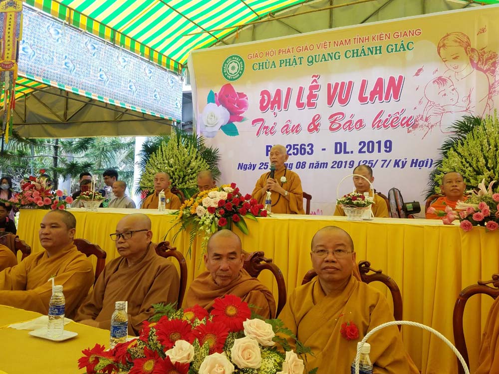 Ban đạo từ buổi lễ, HT. Thích Huyền Thông tri ân đến ban tổ chức và quý vị phật tử. Hòa thượng tán thán công đức quý Phật tử đã noi gương hiếu hạnh Mục Kiền Liên Bồ-tát, sắm sanh lễ vật cúng dường Tam Bảo ngỏ hầu đền đáp ân giáo dưỡng của hai đấng sinh thành.