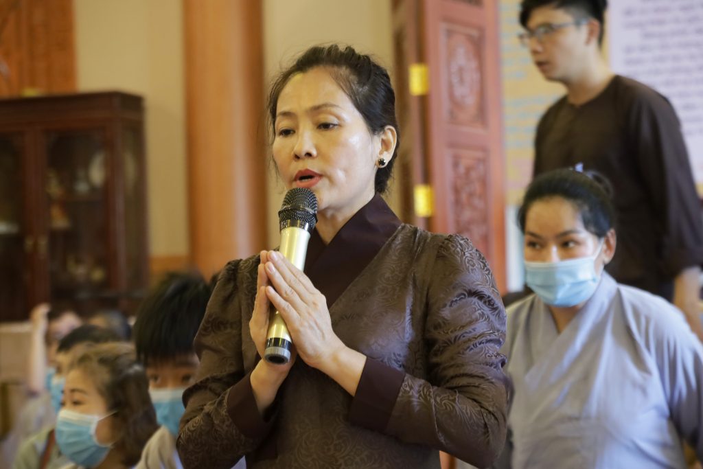 Phật tử Diệu Phượng - Đại diện đạo tràng Phật tử chùa Sắc Tứ Thập Phương thành kính dâng lời cảm niệm và cúng dường pháp y Ca sa đến chư Tôn đức chứng minh.