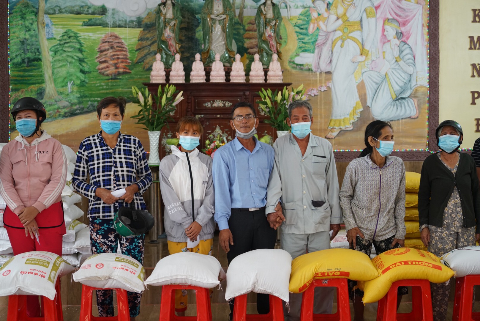 Cuối buổi lễ là phần phát quà cho quý bà con, tại đây Thượng tọa Trụ trì, bà Trần Thị Phương Lan, ông Bùi Văn Thế đại diện cho gia đình ông Đỗ Phát Đạt cùng các cấp chính quyền đã trao các phần quà đến tận tay đến với quý bà con. Mỗi phần quà là tấm lòng trân trọng của quý Mạnh thường quân cũng như thầy Trụ trì với tấm lòng của người con Phật hy vọng giúp đỡ bà con phần nào khó khăn trong tình hình dịch bệnh hiện nay.