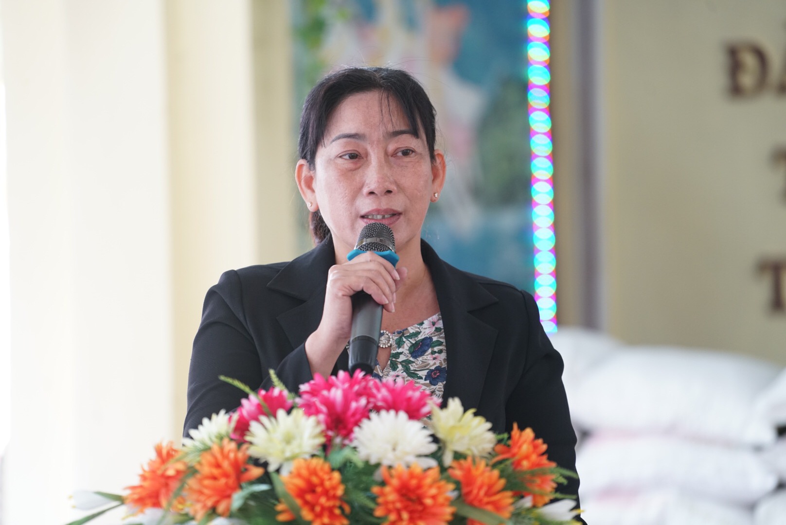 Đại diện chính quyền, bà Phạm Thị Cẩm Hà phát biểuPhát biểu chia sẻ, TT. Thích Thiện Nhựt cho biết đây là một nghĩa cử cao đẹp của một người đệ tử Phật nhân dịp Tết đến xuân về cũng như trước tình hình dịch bệnh khó khăn. Thượng tọa cho biết trước đó Gia đình ông Đỗ Phát Đạt đã cúng dường cho chùa Thạnh An 50 triệu đồng trùng tu một số kiến trúc, bà Trần thị Phương Lan đã hỗ trợ 22 triệu và một số nhà Mạnh thường quân đã cúng dường hỗ trợ việc lót gạch ngôi giảng đường.