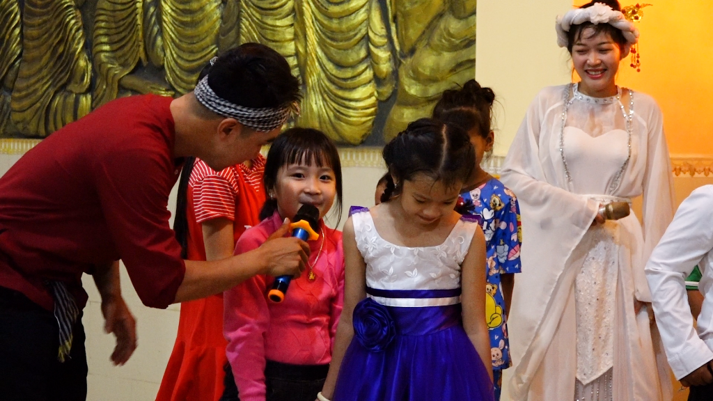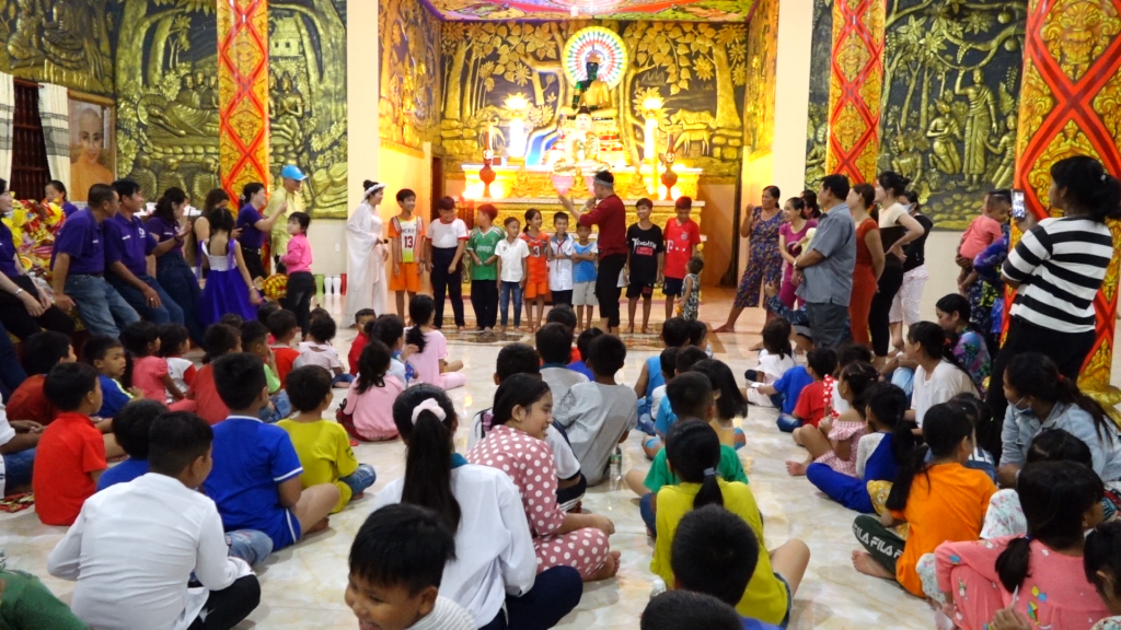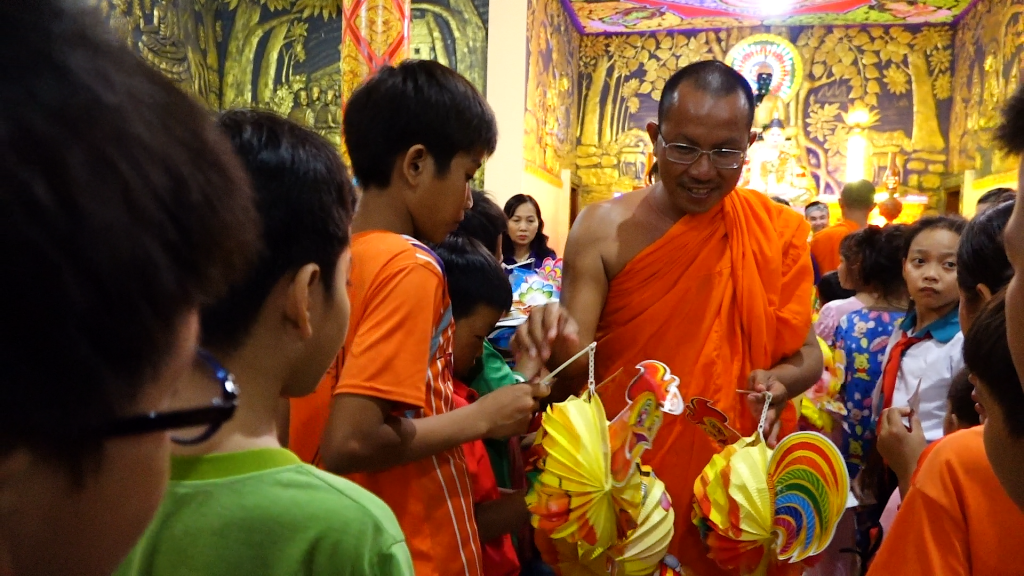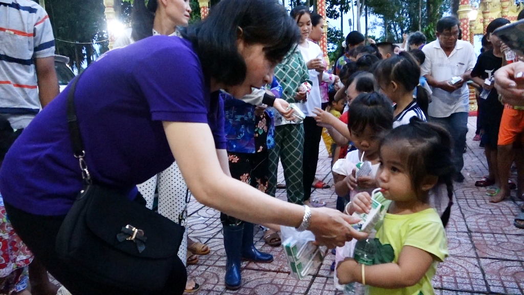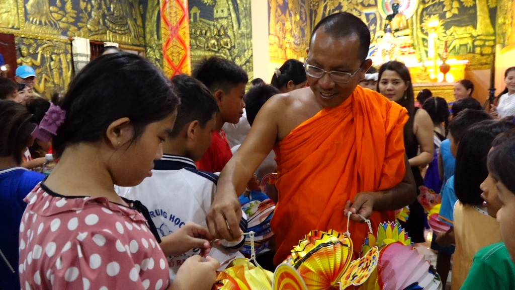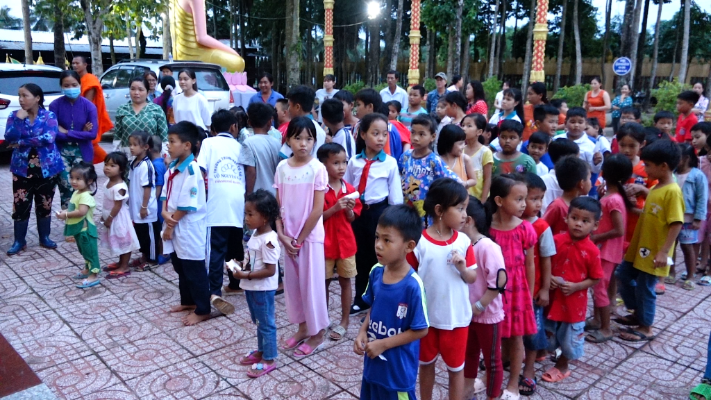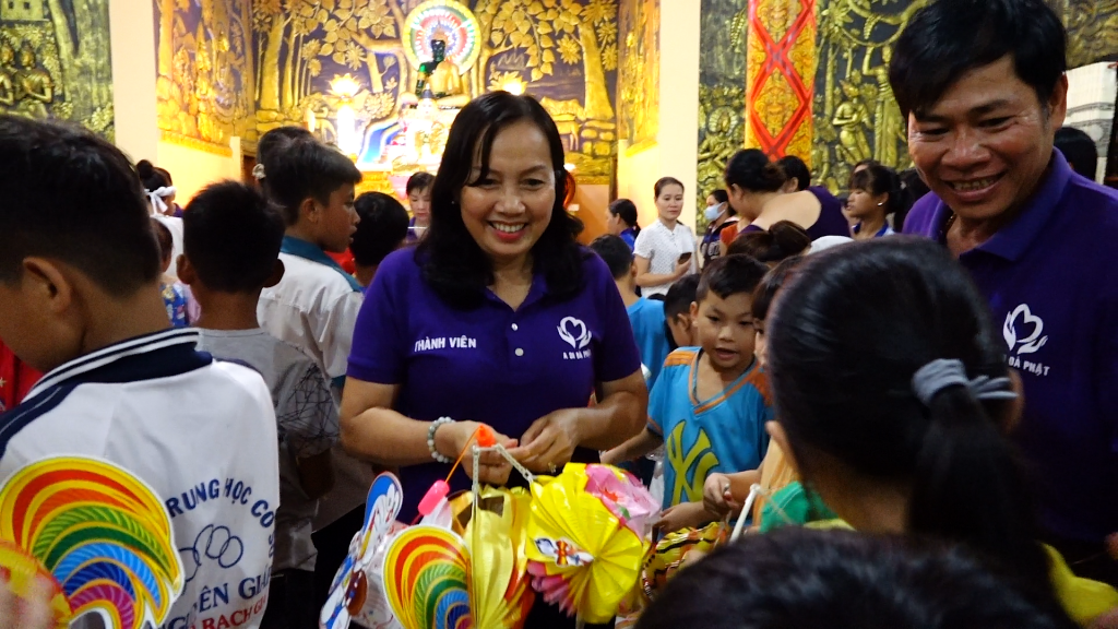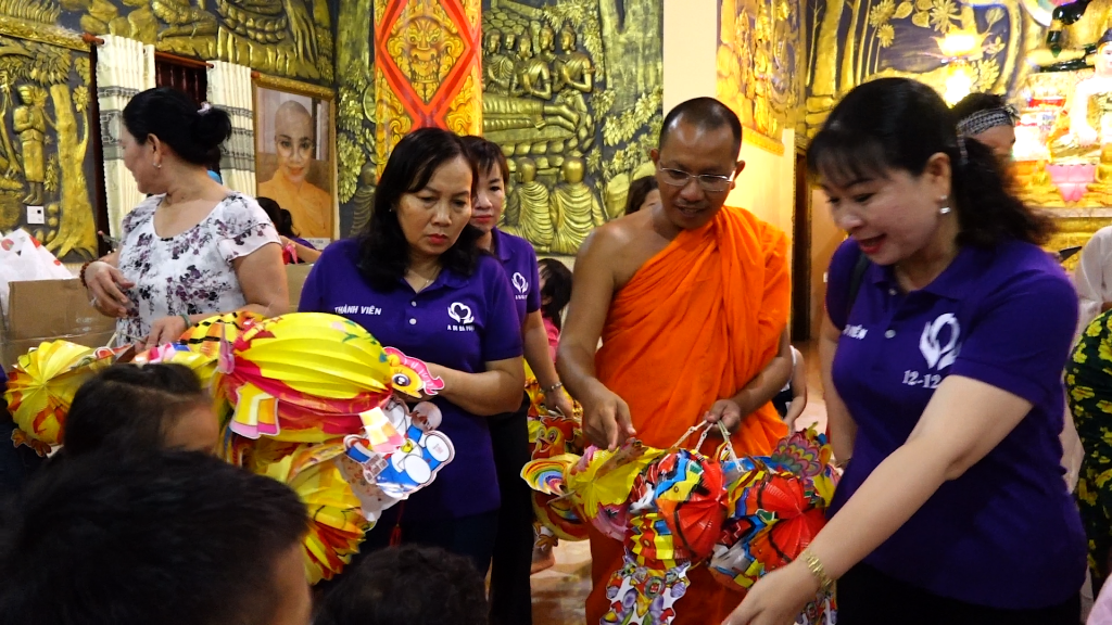 Tại đây, quý chư Tăng và các anh chị trong nhóm từ thiện Nhân Ái đã trao tặng 100 phần quà đến các em gồm: bánh, sữa, đèn lồng,... Món quà tuy nhỏ nhưng nói lên sự chung tay quan tâm của chư Tăng và quý Phật tử thiện nguyện, mong muốn động viên cho các em vượt khó học tập, hiếu thảo với ông bà cha mẹ, đồng thời giúp cho các em có một mùa Trung thu vui tươi, hạnh phúc và ấm áp bên gia đình.