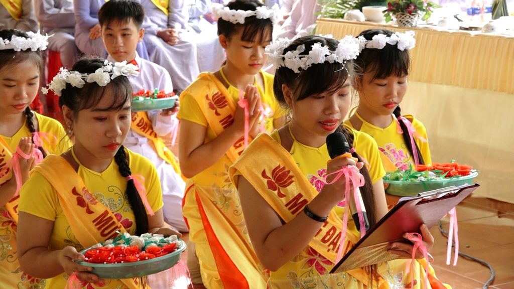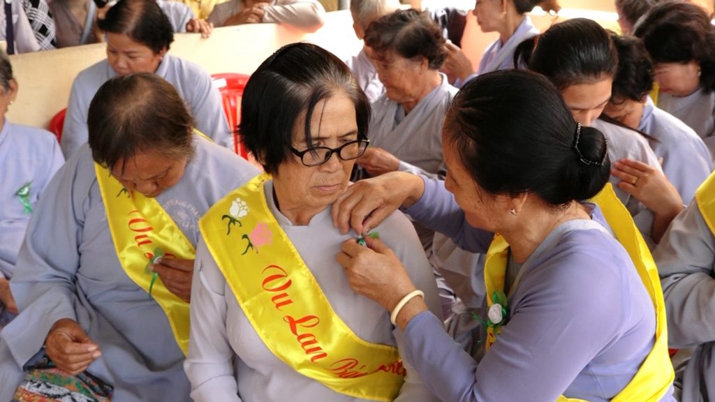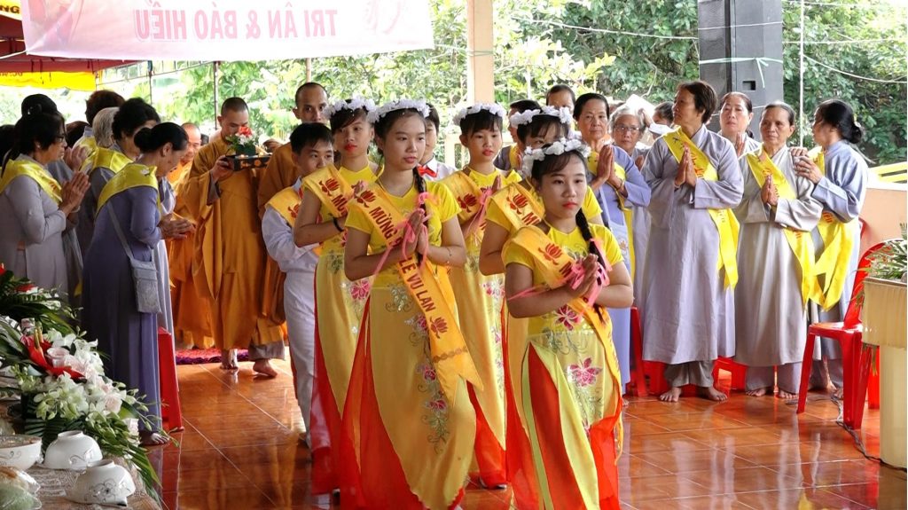 Trước khi vào buổi lễ là chương trình văn nghệ của các ca sĩ, nghệ sĩ, tiếp sau đó các em Phật tử một lòng thành kính dâng những đóa hoa tươi thắm cúng dường lên mười phương Tam bảo cùng chư Tôn đức chứng minh. Trong không khí trầm lắng các em trong GĐPT dâng lời hoài niệm về ân đức cha, mẹ lên chư Tôn đức Chứng minh và toàn thể hội chúng. Tiếp đó nghi thức cài hoa hồng cho chư Tôn đức Tăng Ni, quý Phật tử cũng được các em thực hiện. Những bông hoa đỏ thắm tượng trưng cho những ai còn mẹ, những bông hồng trắng cho những ai khi mẹ đã lìa xa, dù hoa hồng màu trắng hay đỏ cũng đều là tình yêu thương dành cho cha mẹ.
