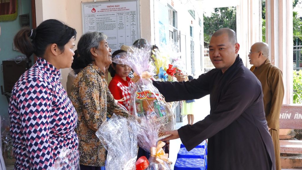 Thay mặt BTS GHPGVN tỉnh phát biểu tại buổi trao quà ĐĐ. Thích Tuệ Tánh đã có lời thăm hỏi sức khỏe và cầu chúc bà con năm mới được kiết tường, hưởng một mùa xuân An Lạc, đồng thời cảm ơn chính quyền địa phương đã tạo điều kiện thuận lợi cho đoàn gửi những phần quà đến với bà con, giúp bà con có thể đón một mùa xuân sung túc hơn. Đại đức cũng căn dặn mọi người vui xuân lành mạnh, tích cực cùng chính quyền xây dựng nông thôn mới, phát triển đời sống ngày càng tốt đẹp hơn.