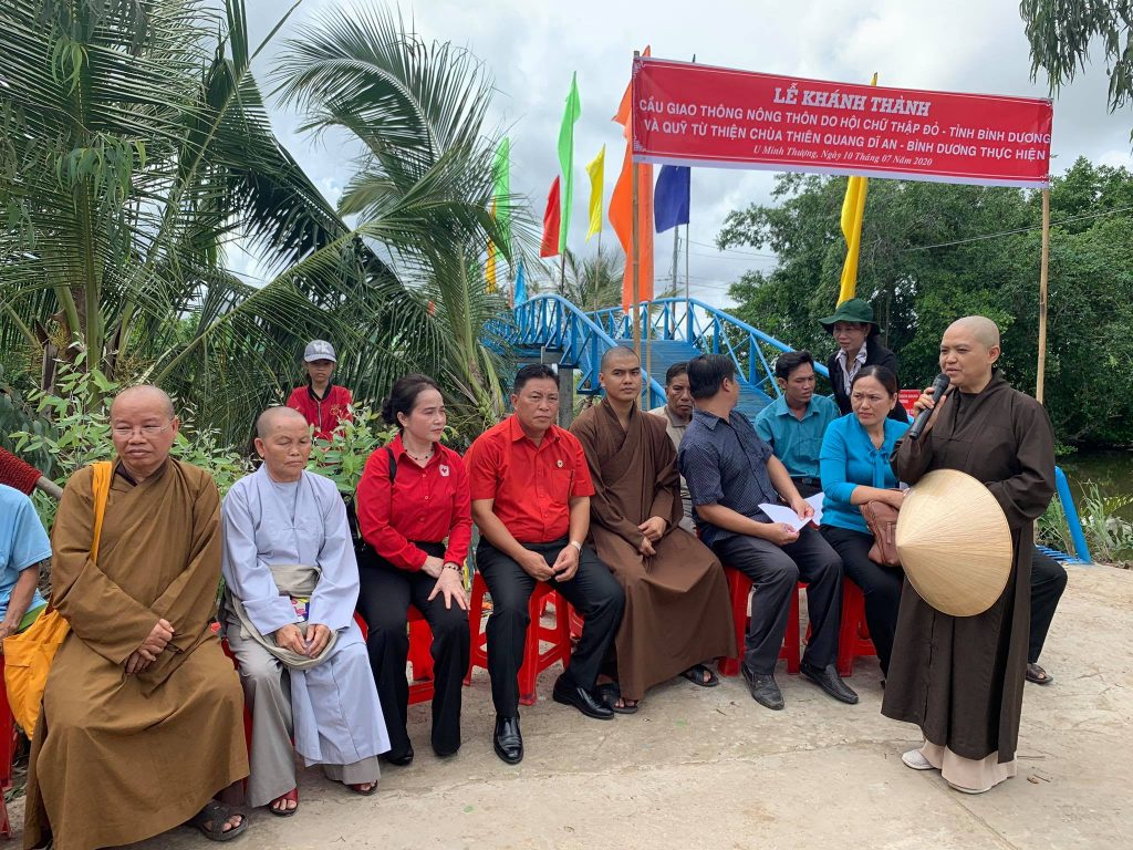 Phát biểu tại buổi lễ, NS. Thích nữ Hương Nhũ chia sẻ: “Được sự kết nối của SC. Thích Nữ Diệu Hiền thì chúng tôi đã đến Kiên Giang đây là lần thứ 2 để giúp đỡ cho bà con nhân dân xây những ngôi nhà tình thương và những cây cầu giao thông phục vụ cho việc đi lại của người dân được thuận tiện hơn, đặc biệt là các em học sinh hằng ngày đến trường được dễ dàng và an toàn hơn. Chúng tôi cảm thấy rất hạnh phúc bởi vì là những người con Phật và cùng với các cấp lãnh đạo địa phương làm những việc tốt đẹp nhất cho người dân là cũng góp một phần nào đó vào công cuộc xây dựng nông thôn mới”.
