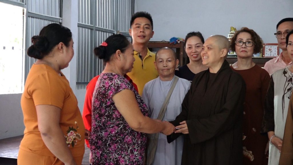Tại đây, Ni sư Hương Nhũ gửi lời chúc mừng đến gia đình vì có được căn nhà mới như mong ước. Ni sư cũng động viên gia đình phải luôn phấn đấu làm việc để có cuộc sống ngày càng tốt hơn và đặc biệt hơn là để góp phần cùng chính quyền địa phương xây dựng nông thôn mới.
