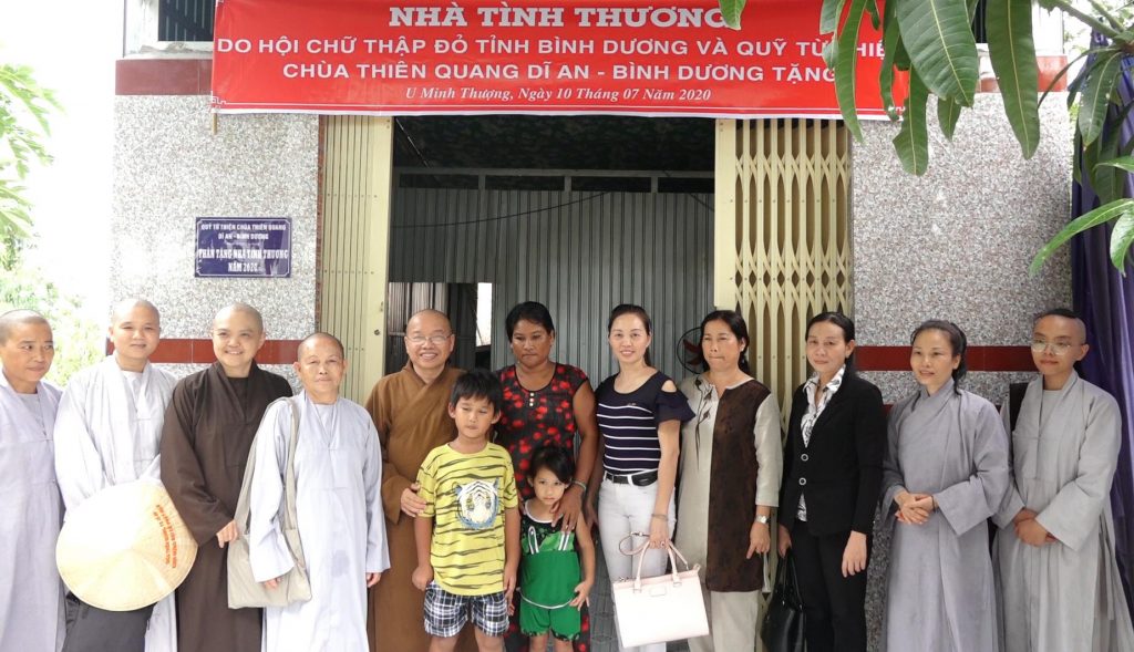 Về phía nhà tài trợ có NS. Thích nữ Hương Nhũ - Ủy viên Thường trực ban Phật giáo Quốc tế TƯ, Ủy viên ban Hoằng pháp TƯ GHPGVN, Trụ trì chùa Thiên Quang làm trưởng đoàn; bà Nguyễn Thị Lệ Trinh - Chủ tịch Hội chữ thập đỏ tỉnh Bình Dương và các Phật tử trong Hội từ thiện chùa Thiên Quang.