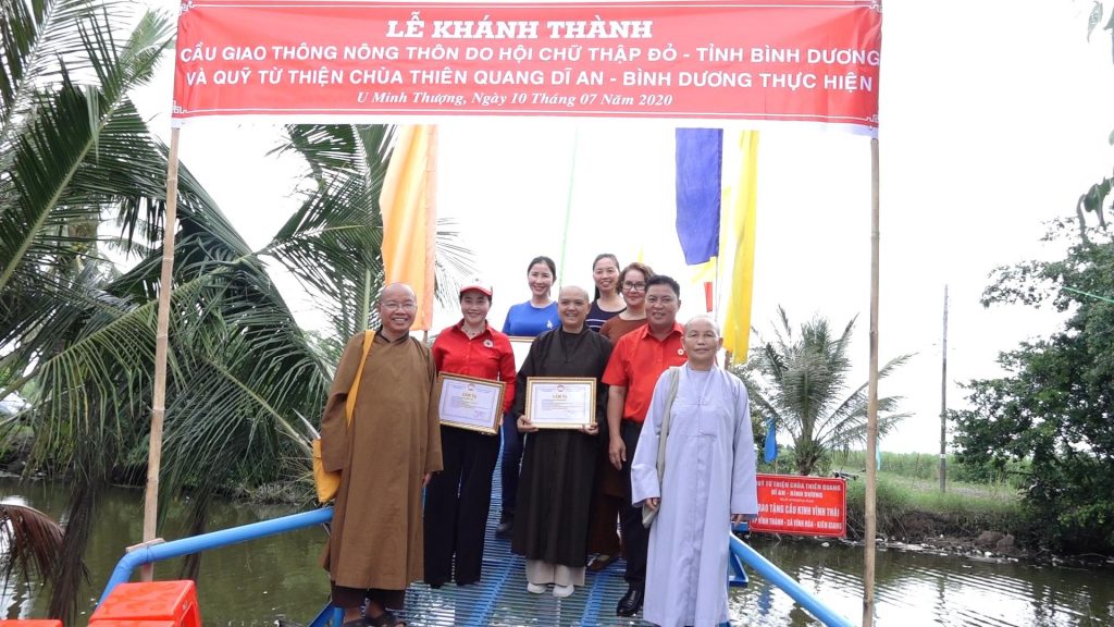 PSO - Sáng ngày 10/7/2020 (nhằm 20/5 năm Canh Tý), tại xã Vĩnh Hòa và xã Minh Thuận, huyện U Minh Thượng, tỉnh Kiên Giang, BTS GHPGVN tỉnh Kiên Giang phối hợp với Hội từ thiện chùa Thiên Quang (TX. Dĩ An, Bình Dương) và chính quyền địa phương tổ chức lễ bàn giao, thông xe cầu giao thông và nhà An cư lạc nghiệp.