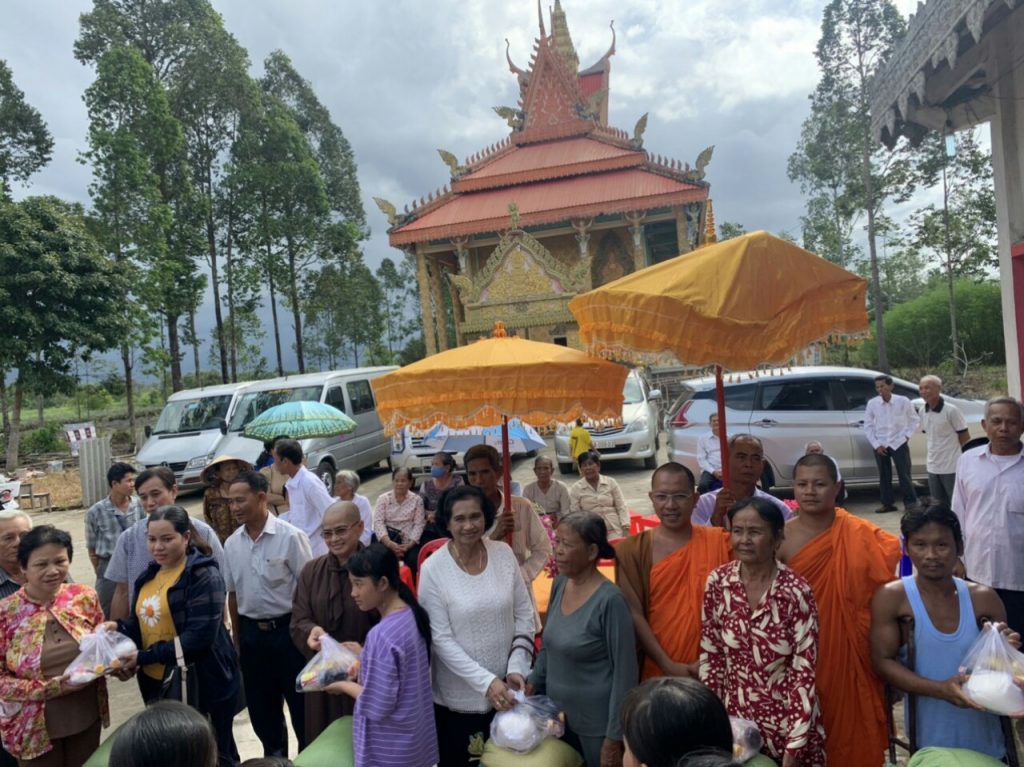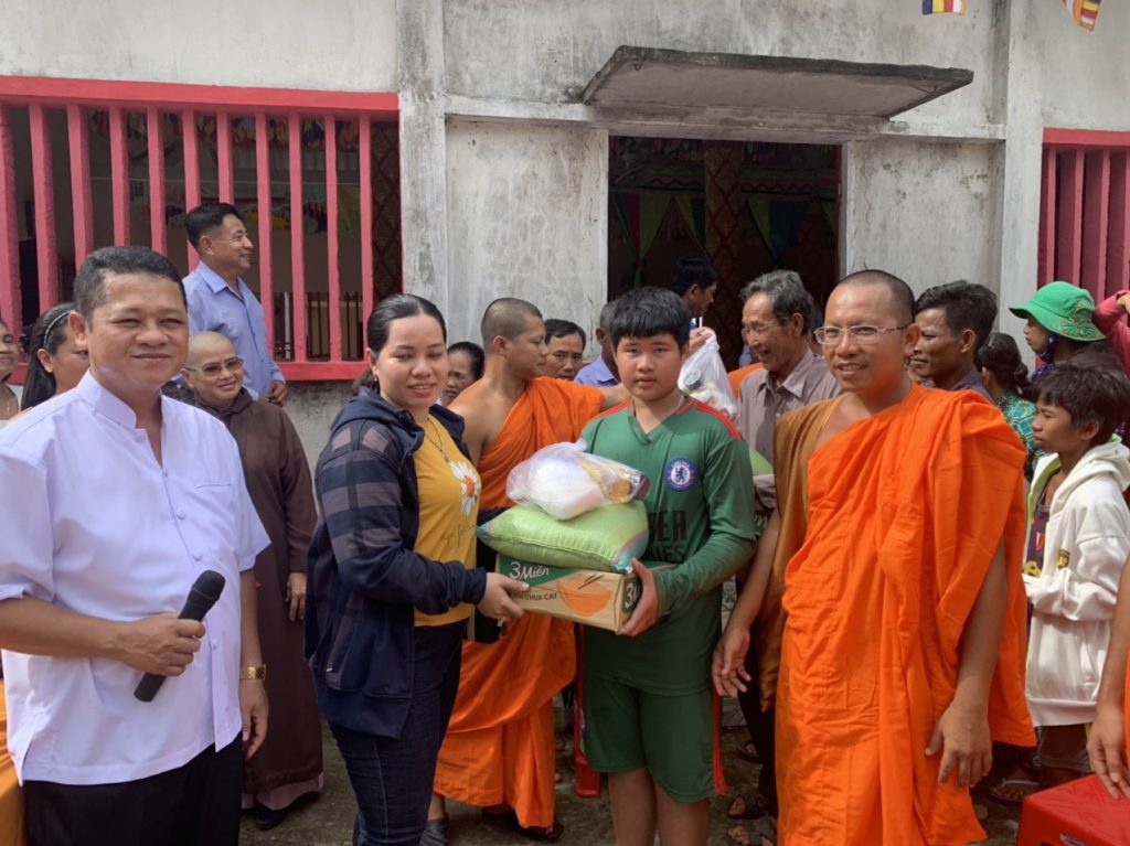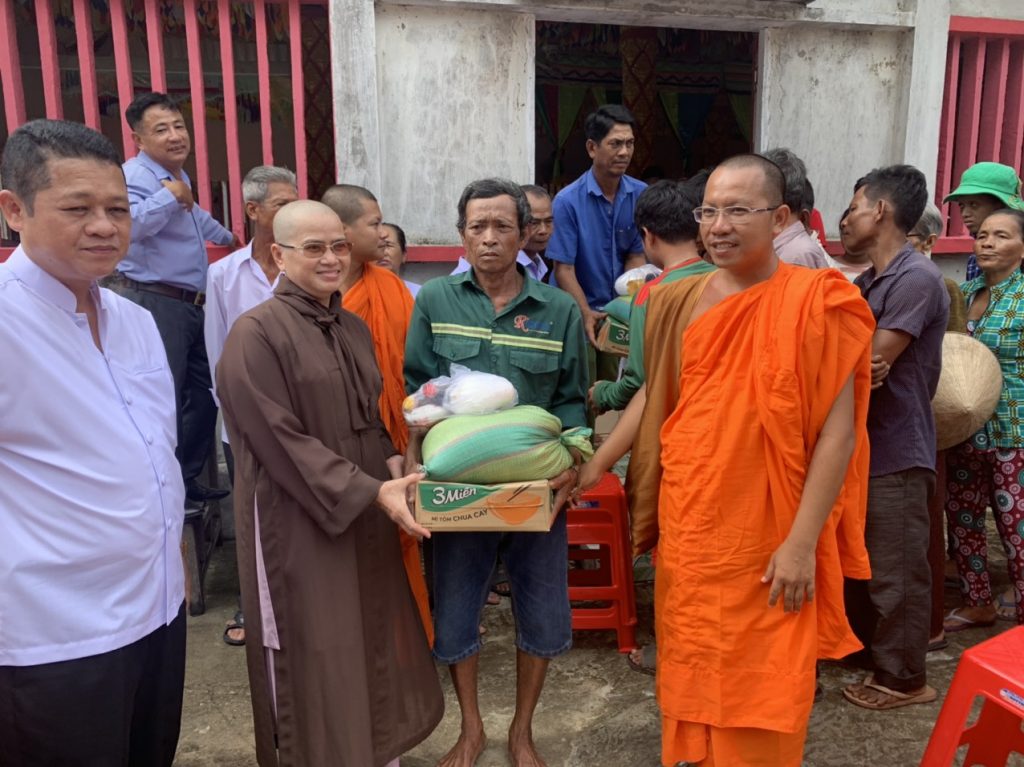 Buổi tặng quà với sự tham dự ĐĐ. Danh Út - Chủ tịch Hội ĐKSSYN TP. Rạch Giá, tỉnh Kiên Giang, Trưởng hội từ thiện chùa Thôn Dôn; ĐĐ. Danh Quýt Thi - Trụ trì chùa Kè Một; SC. Thích Nữ Kim Linh cùng chư Tăng trong đoàn đồng tham dự.