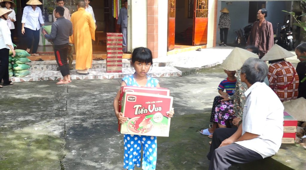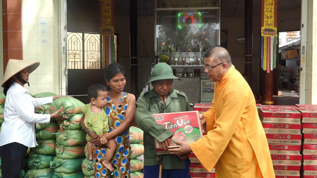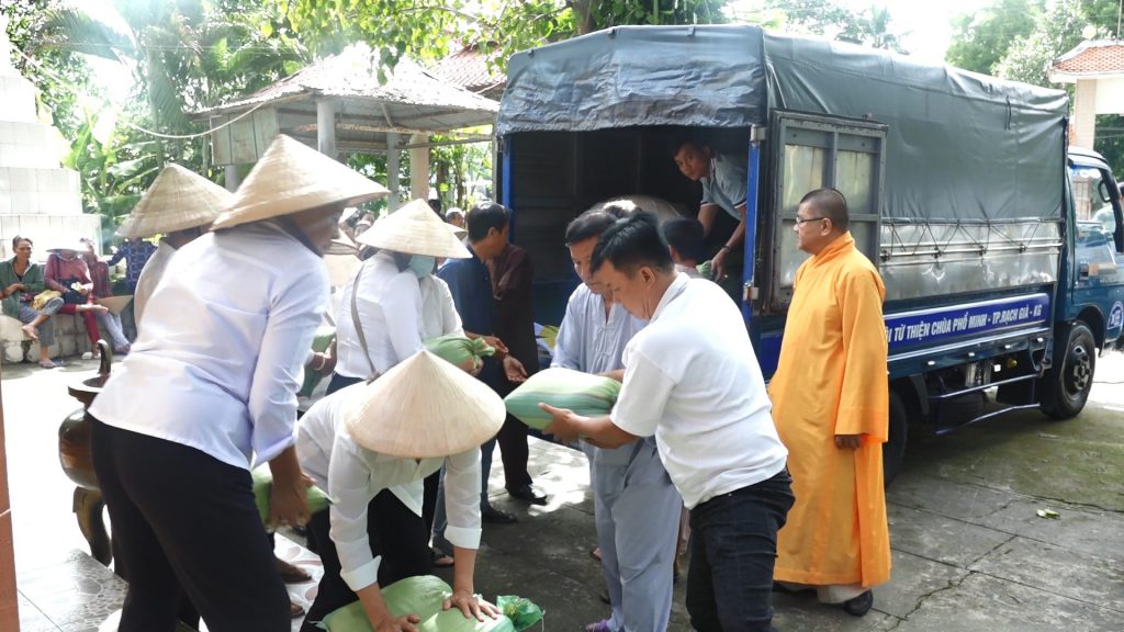 Vừa qua nhiều đợt mưa lớn kéo dài đã gây ngập lụt trên nhiều huyện tại tỉnh Kiên Giang, trong đó ấp Vĩnh Phước thuộc thị trấn Giồng Riềng là một trong những khu vực chịu nhiều thiệt hại do mưa lớn kéo dài, gây tổn thất về hoa màu, nhiều căn nhà bị ngập nước. Thấu hiểu được nỗi khó khăn của bà con, TT. Thích Minh Tiến đã cùng các Phật tử Hội từ thiện chùa Phổ Minh gởi tặng những phần quà đến với con, mong muốn san sẻ một phần khó khăn giúp mọi người có thêm động lực cố gắng làm ăn để ổn định cuộc sống.