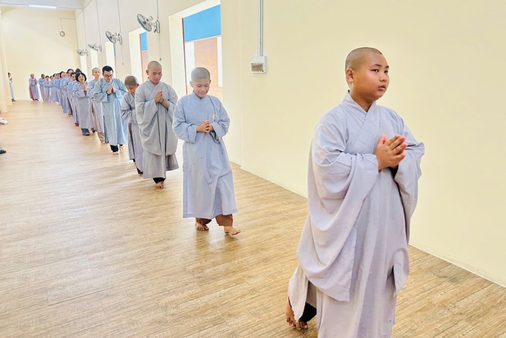 Sau khi thọ trai, quý Phật tử vân tập về chánh điện đi kinh hành trong sự trang nghiêm. Việc đi kinh hành giúp quý Phật tử giữ tâm chánh niệm trong từng hành động, mỗi câu niệm Phật nhất tâm theo từng bước chân chậm rãi đưa tâm trí trở về hiện tại, nuôi dưỡng sự tỉnh giác và an lạc.