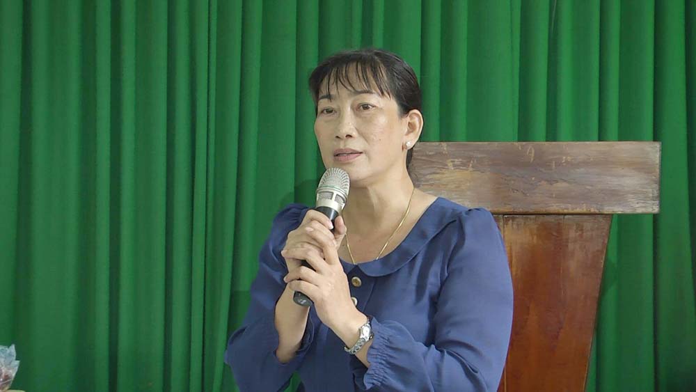 Đại diện chính quyền và bà con địa phương, bà Phạm Thị Cẩm Hà phát biểu cảm tạ đến Ni Trưởng, chư tôn đức Ni trong phân ban ni giới cùng các vị Phật tử đã đến thăm và phát quà cho bà con. Bà cũng gửi lời chúc các vị trong đoàn được nhiều sứa khỏe để tiếp tục giúp đỡ mọi người ở những nơi còn gặp khó khăn.