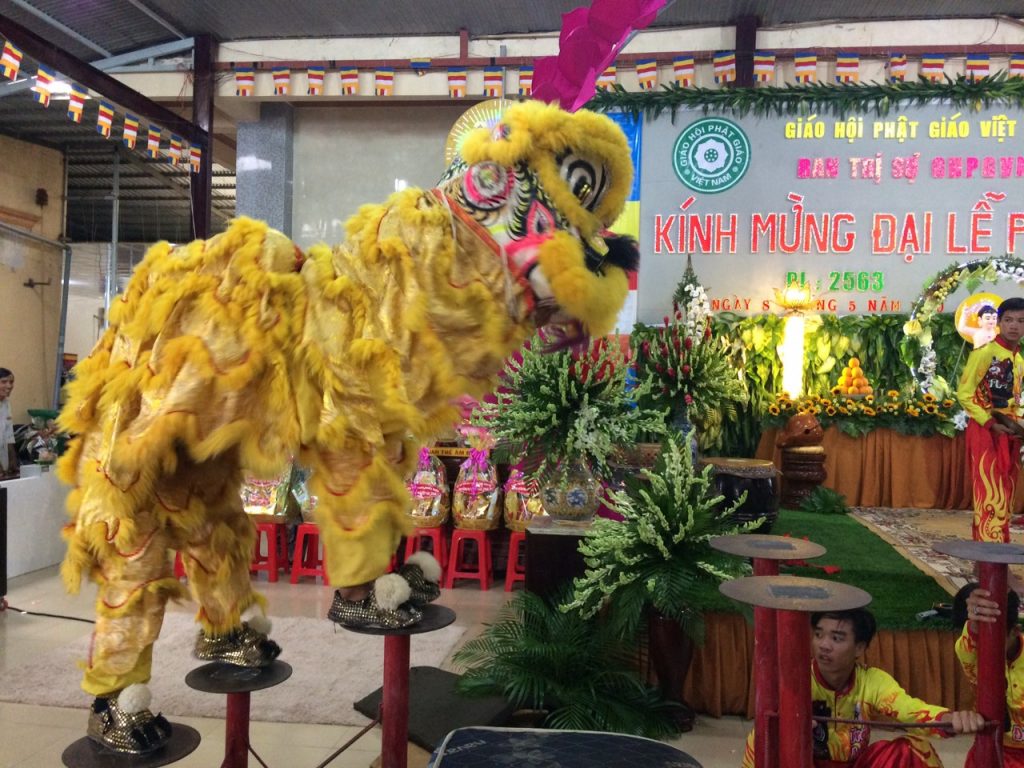 Đại lễ được tiến hành với nghi thức chào Đạo kỳ, Đạo ca và phút mặc niệm. Tiếp theo là các tiết mục múa Lân, văn nghệ kính mừng Phật Đản của các em Phật tử chùa Kiên Tân. Ban Tổ chức đón nhận những đóa hoa tươi thắm từ các vị đại biểu lãnh đạo trong huyện gửi đến chúc mừng Đại lễ.