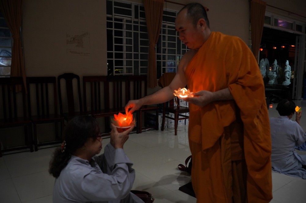 Lễ tưởng niệm bắt đầu bằng nghi thức niêm hương bạch Phật trong bầu không khí thanh tịnh, trang nghiêm. Thượng tọa Thích Minh Tiến thực hiện nghi thức truyền đăng, lần lượt từng ngọn nến được thắp lên, lan tỏa ánh sáng tri ân, soi rọi đêm tưởng niệm với niềm xúc động và lòng thành kính vô biên từ hàng môn đồ pháp quyến.